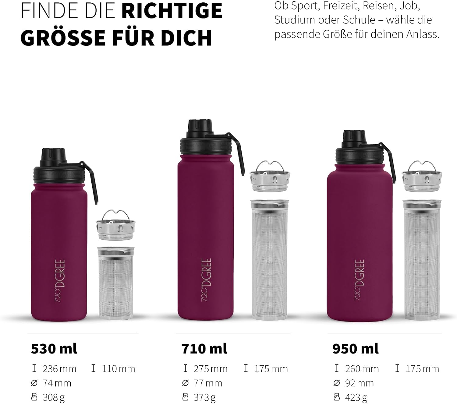 - TRINKE ENDLICH GENUG & FÜHL DICH BESSER - Du willst deine besondere 720°DGREE Trinkflasche immer bei dir haben. Denn dank der KeepDGREE-Technologie bleiben deine Getränke bis zu 12H heiss / 24H kalt - Doppelwand Vakuum Design auf höchstem Niveau. Mit