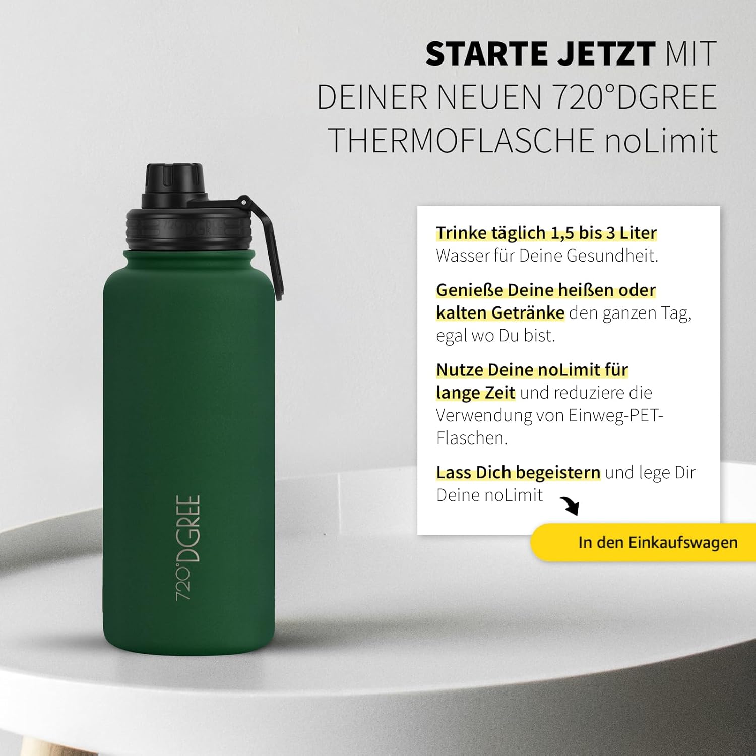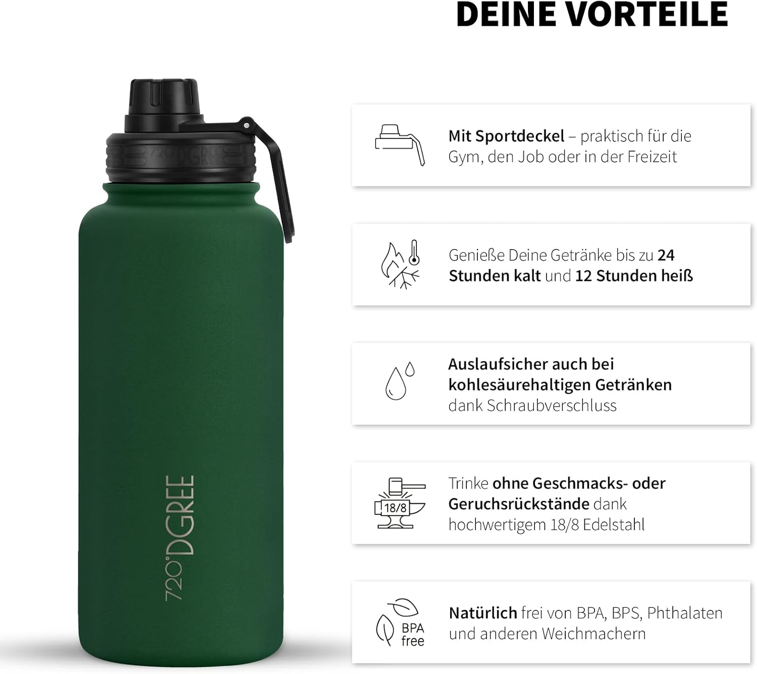 - TRINKE ENDLICH GENUG & FÜHL DICH BESSER - Du willst deine besondere 720°DGREE Trinkflasche immer bei dir haben. Denn dank der KeepDGREE-Technologie bleiben deine Getränke bis zu 12H heiss / 24H kalt - Doppelwand Vakuum Design auf höchstem Niveau. Mit