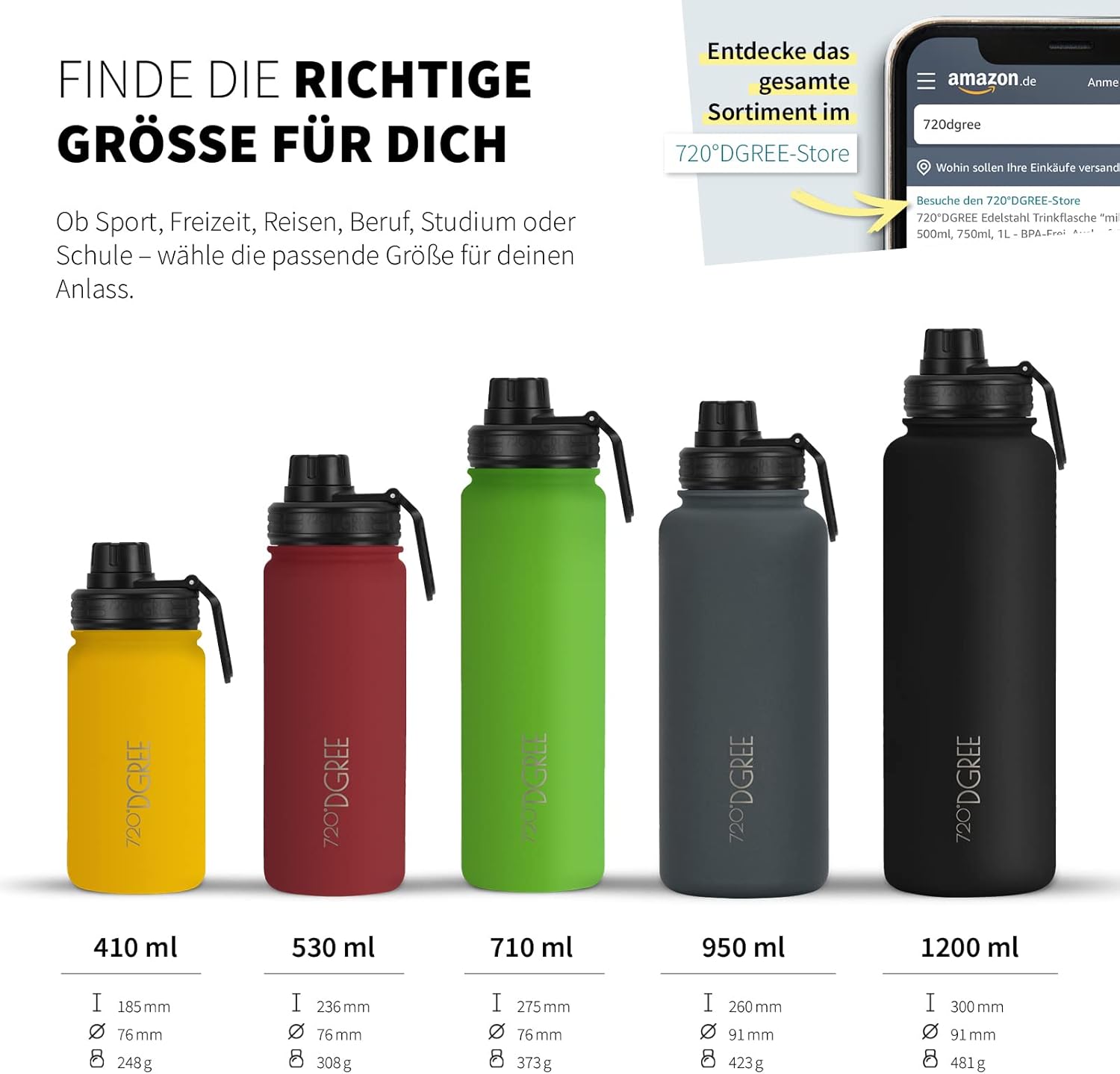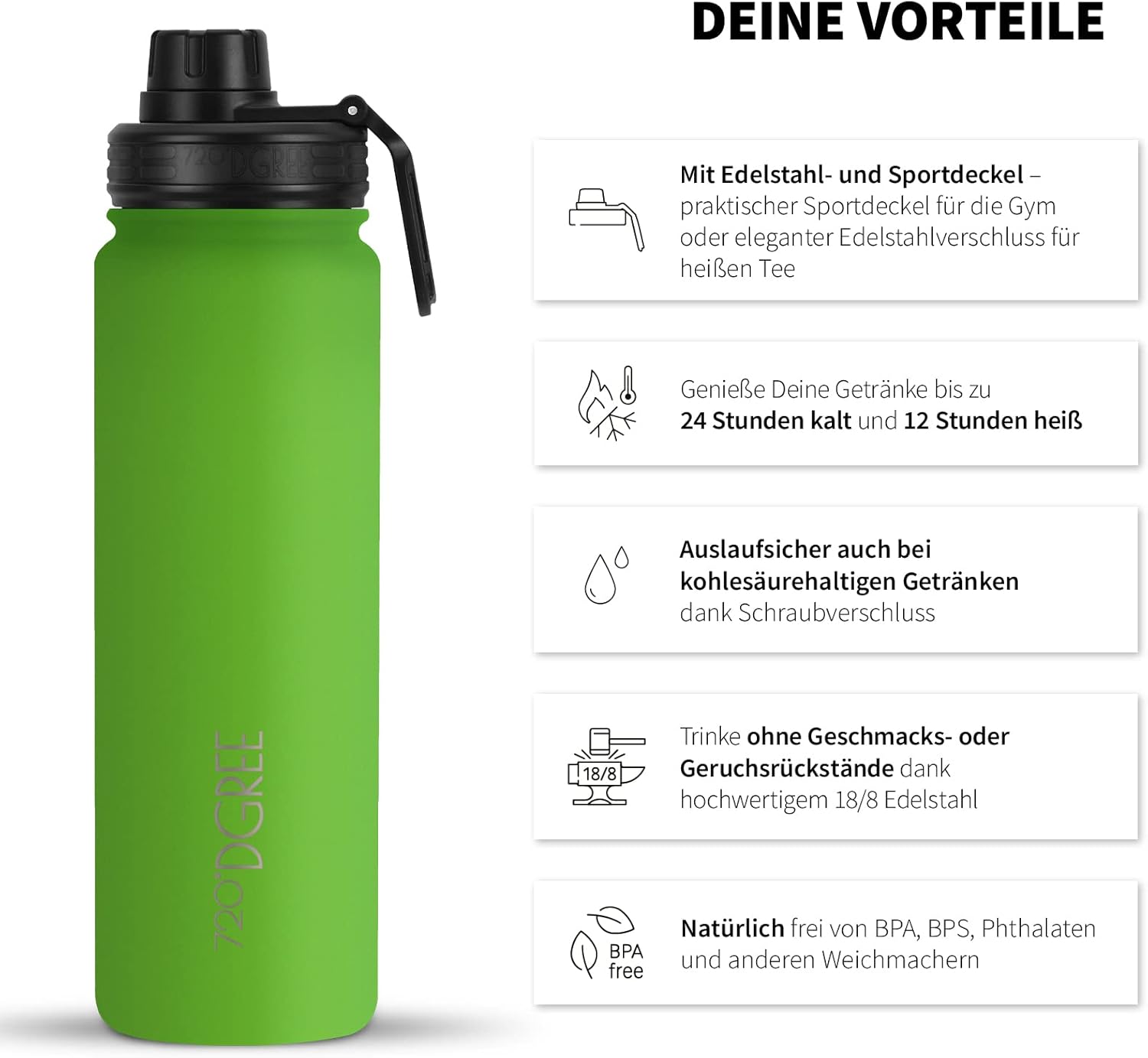 - ✔ TRINKE ENDLICH GENUG & FÜHL DICH BESSER - Du willst deine besondere 720°DGREE Trinkflasche IMMER bei dir haben. Denn dank KeepDGREE-TECHNOLOGY bleiben deine Getränke bis zu 12H HEIss / 24H KALT - Doppelwand Vakuum DESIGN auf höchstem Niveau. Mit