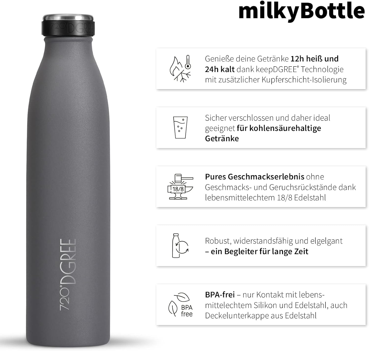 - ✔ DU BIST 100% ZUFRIEDEN ODER GELD ZURÜCK - Sei dir deiner Investition sicher. 720°DGREE steht für HERAUSRAGENDEN DEUTSCHEN KUNDENSERVICE mit tausenden GLÜCKLICHEN KUNDEN. Falls du die "milkyBottle" nicht absolut lieben solltest, schicke diese