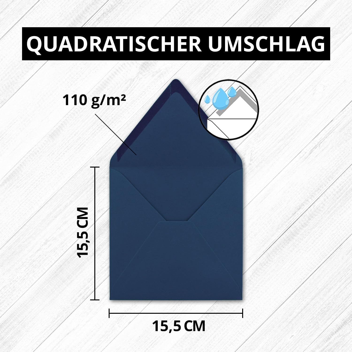 - Umschläge: 155 x 155 mm (Toleranz bis 2mm) - Mit klassischer Spitzklappe und Nassklebung - Ohne Fenster - Hohe Papierqualität mit 110 g/m² - sehr stabil und robust!