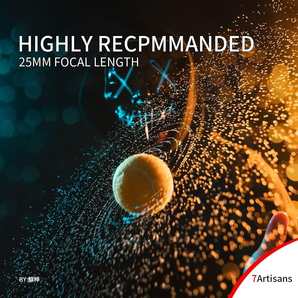 - 【Sehr praktisch 25 mm】: 7artisans 25 mm F0,95 entspricht einem kleinen Weitwinkel von etwa 35 mm. Es bietet eine grössere Flexibilität für die Aufnahme verschiedener Motive. Die minimale Fokussierentfernung beträgt 0,25 m, was verschiedene