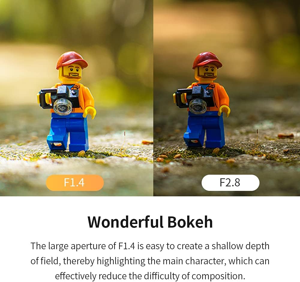 - 【Wunderbare Hintergrundunschärfe】 Die grosse Blende von F1.4 ist einfach, eine flache Schärfentiefe zu schaffen, wodurch die Hauptfigur hervorgehoben wird, was die Schwierigkeit der Komposition effektiv reduzieren kann