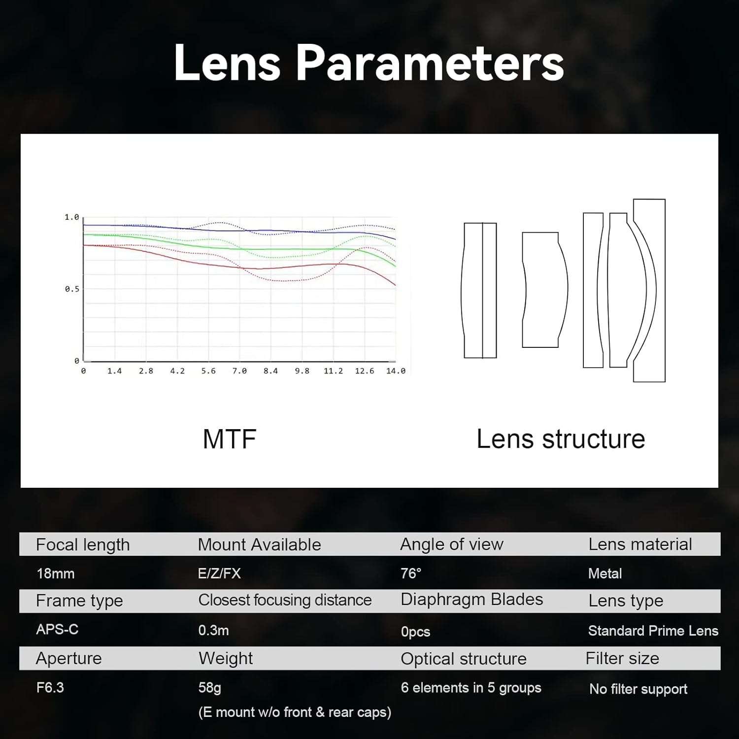 - Maximale Blende: f6.3. Minimale Brennweite: 0,35 m. Die äquivalente Brennweite von 18 mm beträgt ca. 27 mm