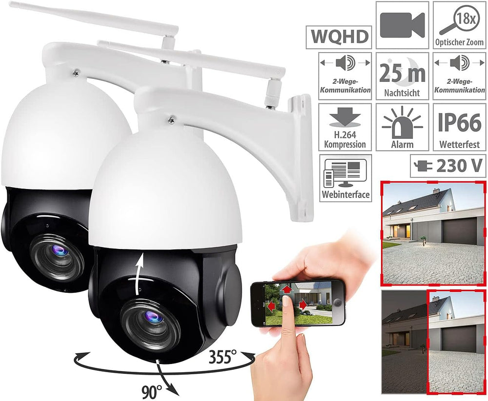 - 18-fach optischer Zoom für bestes Bild auch beim Vergrössern • Extrahohe 2K-Auflösung mit 2560 x 1440 Pixeln (WQHD) • Riesiges 360°-Sichtfeld dank Pan-Tilt-Funktion • Integrierte Sirene mit 85 dB lautem Alarm • Kostenlose App ELESION für