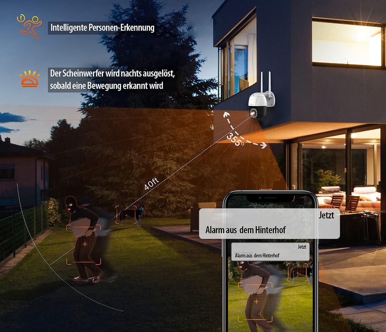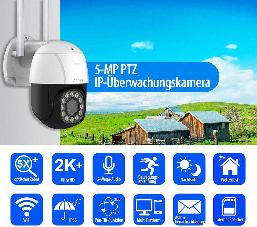 - Extra-hohe 2K+-Videoauflösung mit 2560 x 1920 Pixeln • 5-facher optischer Zoom für bestes Bild auch beim Vergrössern • Riesiges Sichtfeld dank Pan-Tilt-Funktion • Für weniger Fehl-Alarme: unterscheidet zwischen Objekten und Personen •