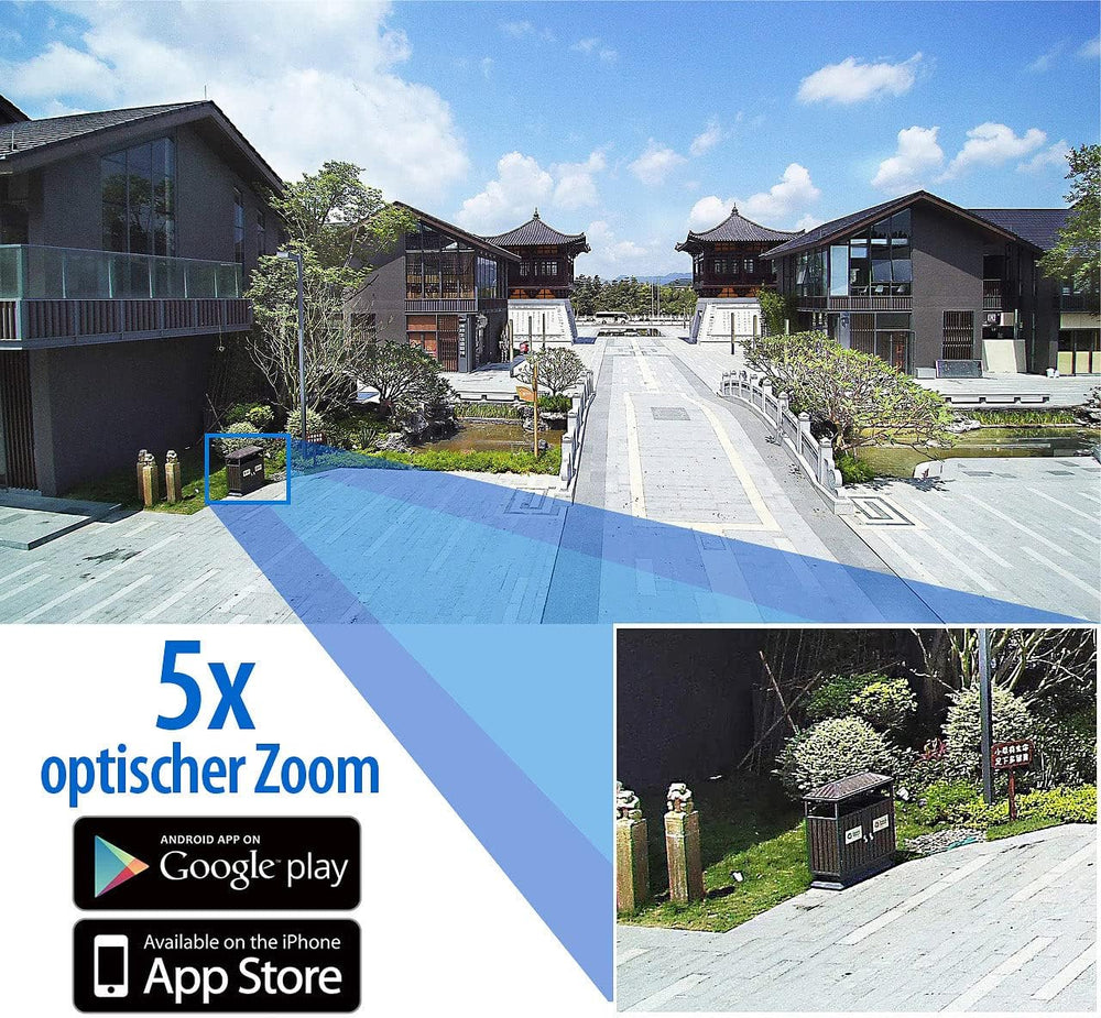 - 5-facher optischer Zoom für beste Bildqualität auch beim Vergrössern • Intelligente Personen-Erkennung: unterscheidet auf Wunsch zwischen Menschen und Gegenständen oder Tieren und verhindert so Fehlalarme • Lichtstarke Optik: Blende f/1,2,