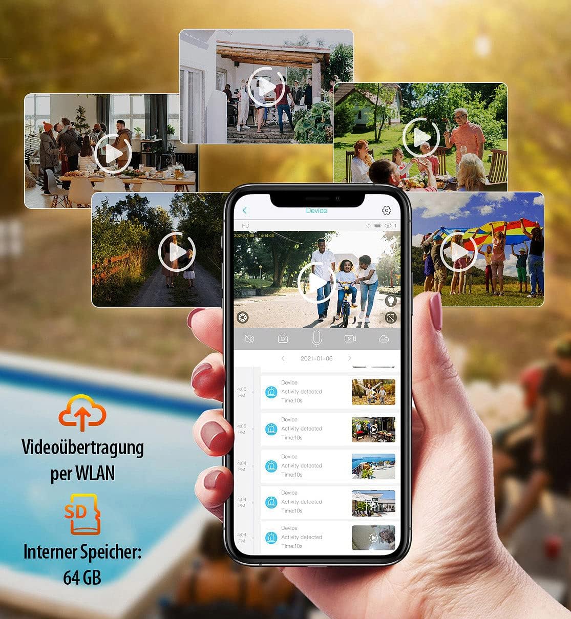- H.265-Video-Kompression: für hohe Aufnahme-Qualität bei geringem Speicherbedarf • Bewegungserkennung per Bildsensor für automatischen Aufnahmestart • 6 weisse LEDs für Nachtsicht in Farbe sowie 6 LEDs für Infrarot-Nachtsicht: bis zu 25 m,
