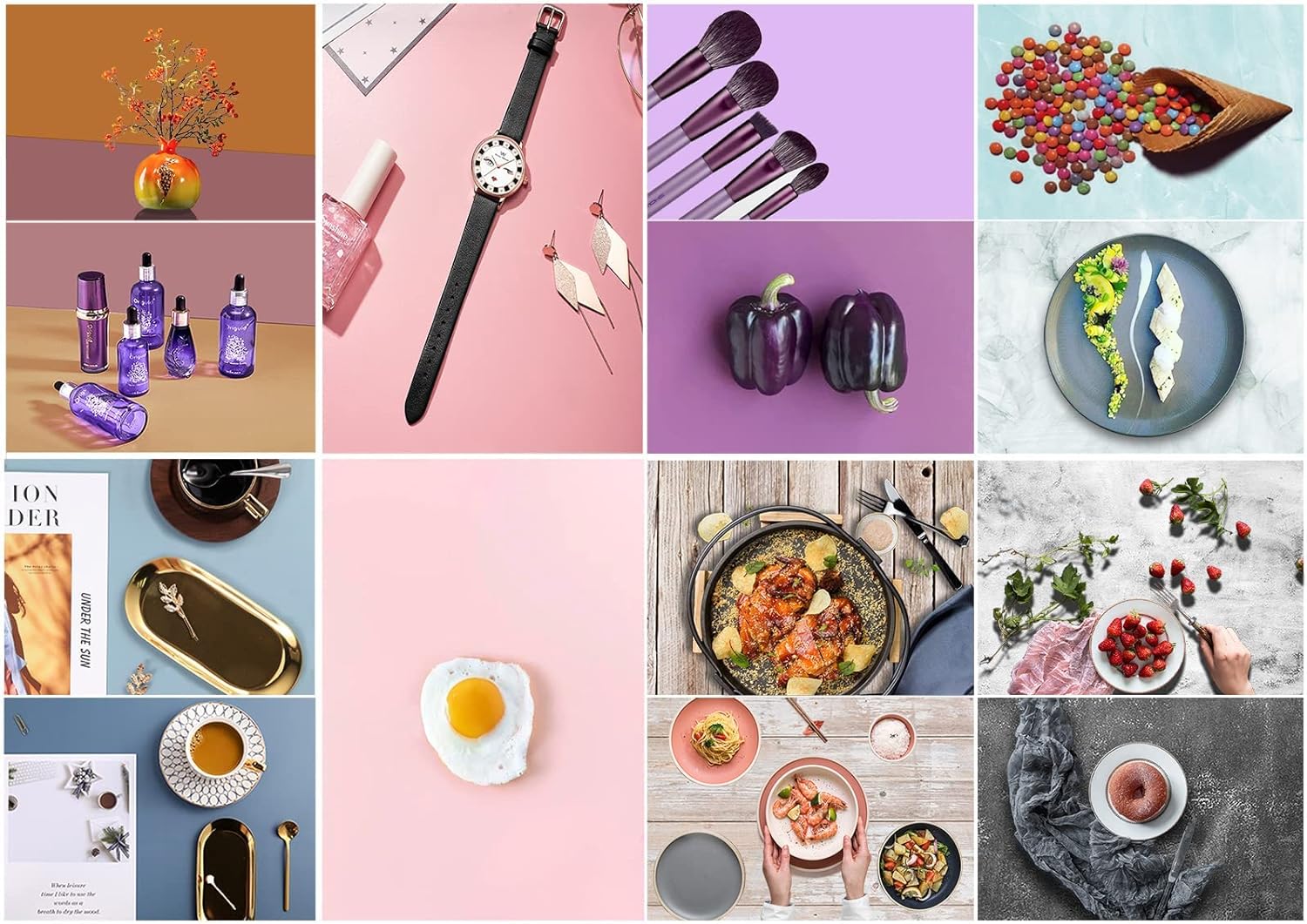 - ★ 【Neuer Trend Fotografie Hintergrund 】:Geliebt von Fotografen, Bloggern auf Instagram und Online-Verkäufer. Jeder kann einfach professionelle Fotos oder Videos für Ihre Lebensmittel, Kosmetika, Schmuck, Ornamente, Make-up, Hautpflege Kleines