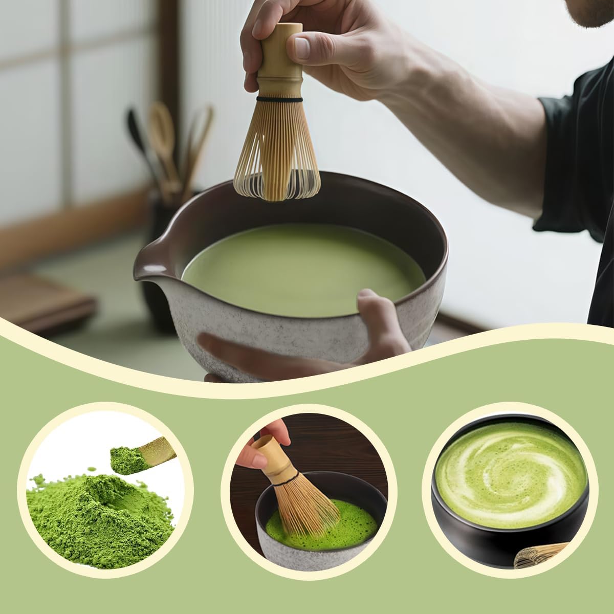 - Entdecken Sie die Kunst der Matcha Besen Set: Mit diesem Matcha Set ohne pulver können Sie die traditionelle Kunst der Matcha-Zubereitung mühelos erleben, das Teepulver schnell auflösen und aufschäumen, und geniessen Sie bei jedem Schluck den