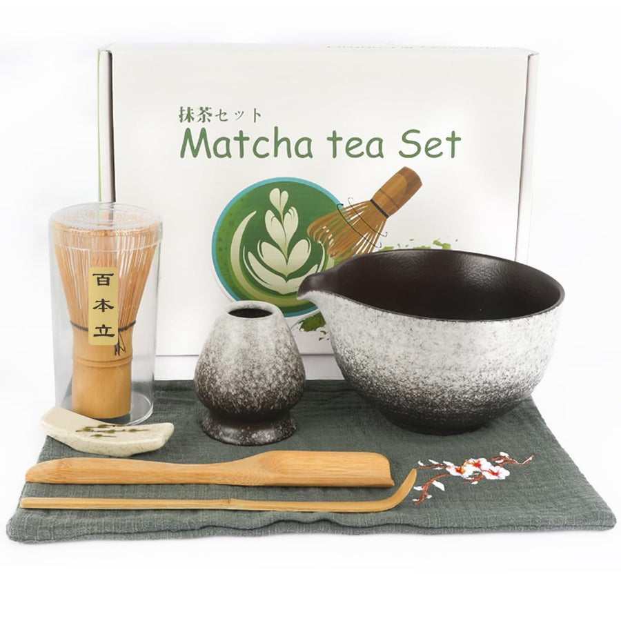 - Premium Matcha Set Komplettausstattung (7-teilig):Alles für die perfekte Teezeremonie: Handgefertigter Bambusbesen , Bambuslöffel , Keramik-Schale , 2 Keramik-Ständer für Besen & Löffel sowie Baumwoll-Teetuch. Inkl. stylischer Aufbewahrungslösung