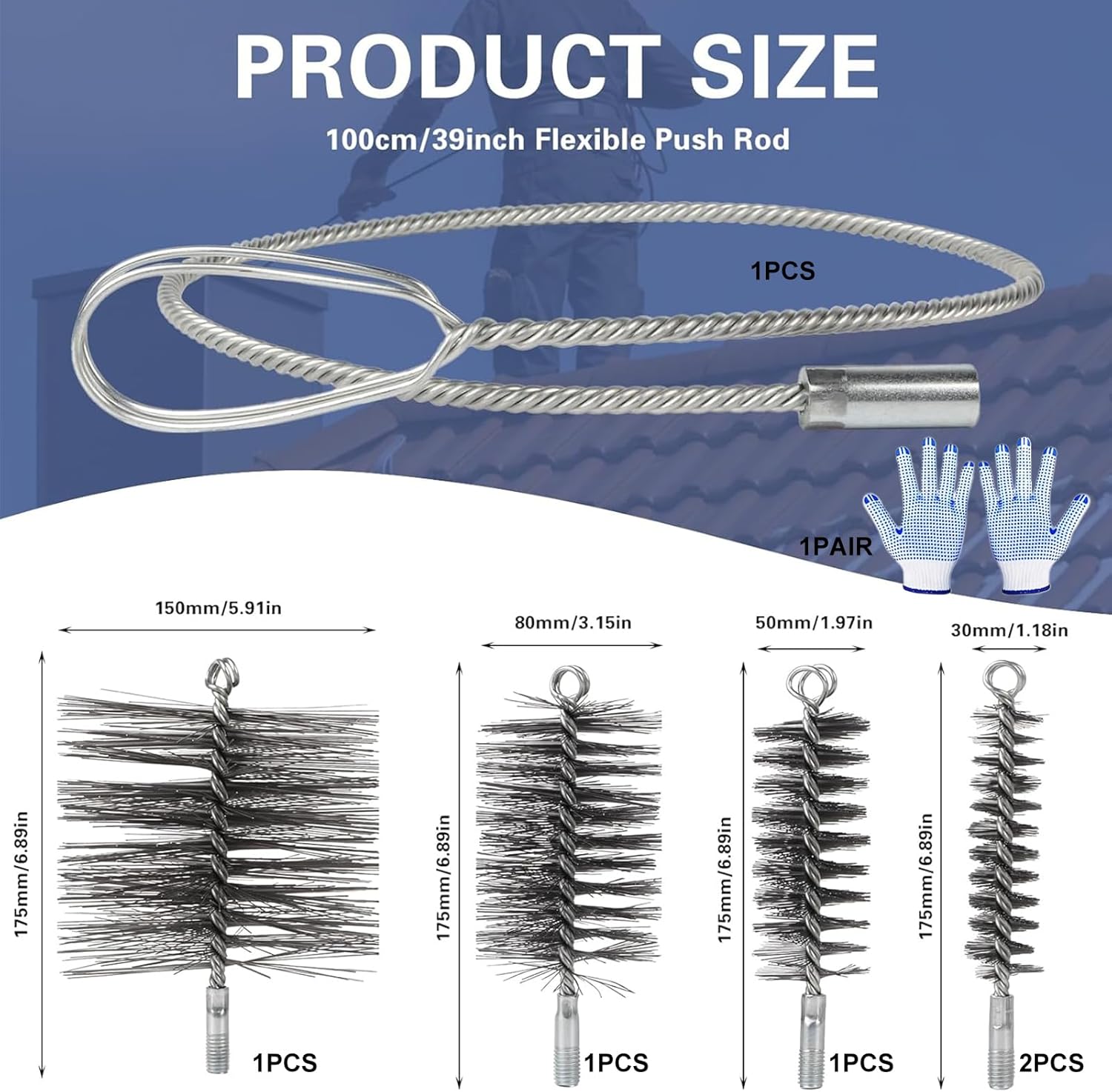 - ✅ [Lieferumfang] Dieses Kaminbürsten-Set enthält sechs Drahtbürsten mit unterschiedlichen Durchmessern (30 mm, 50 mm, 80 mm und 150 mm) und einem flexiblen Edelstahlstab. Die Bürsten passen für verschiedene Rohrgrössen und reinigen selbst tiefe