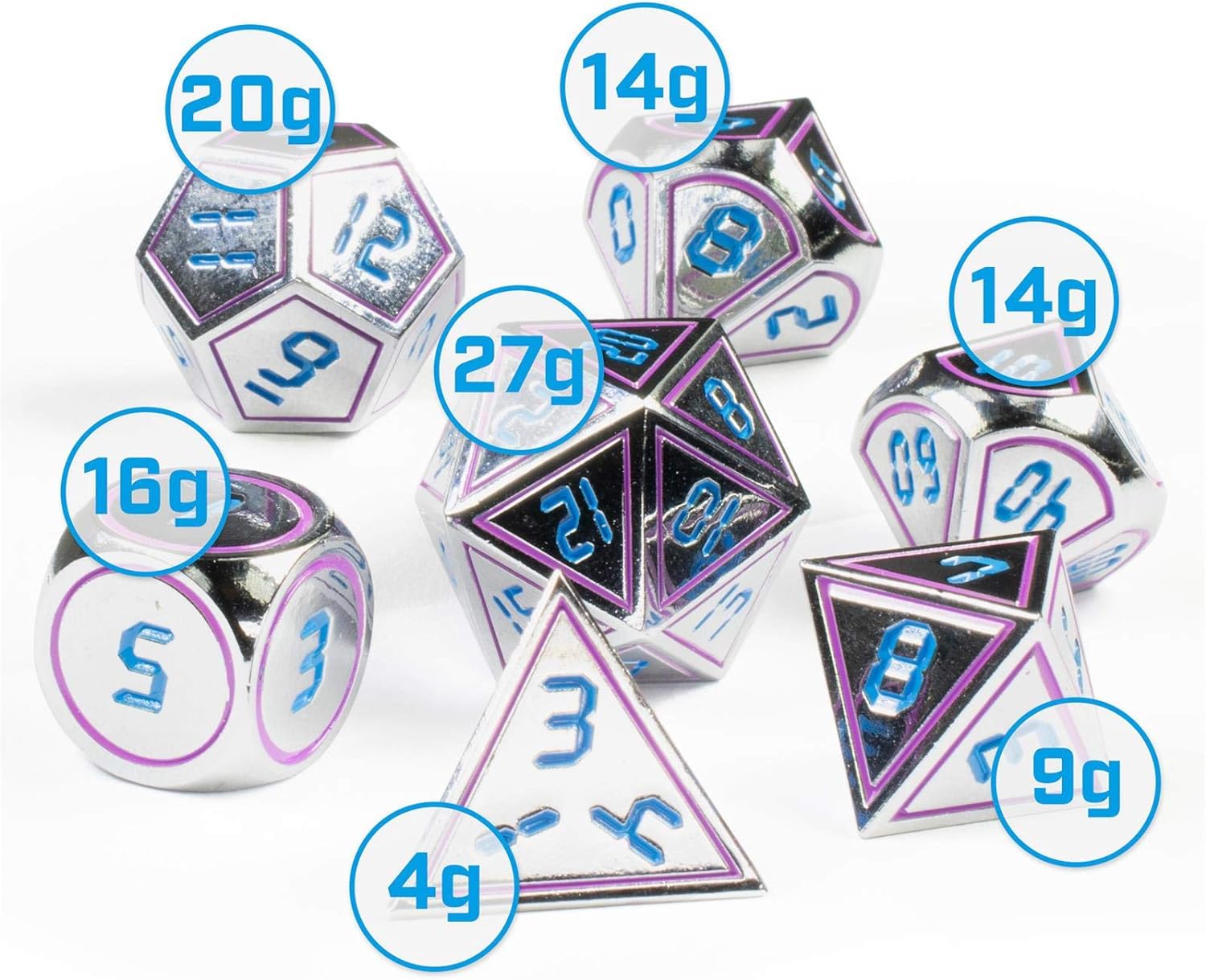 - METALL-WÜRFELSET – Das 7-teilige Dice Set beinhaltet alles was du für eine Partie benötigst: D20, D12, D10 (00-90), D10 (0-9), D8, D6 und D4 Würfel
