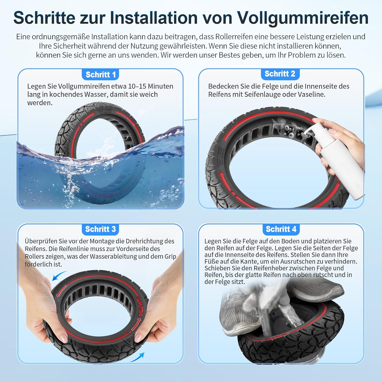 - 【BESSERES FAHRERLEBNIS】Unsere Reifen verwenden ein wissenschaftliches Hohlwaben- und Antirutschstreifen-Design, sodass der Reifen eine höhere Rutschfestigkeit, Stossdämpfung, Durchlässigkeitsbeständigkeit und Haltbarkeit aufweist, um ein besseres