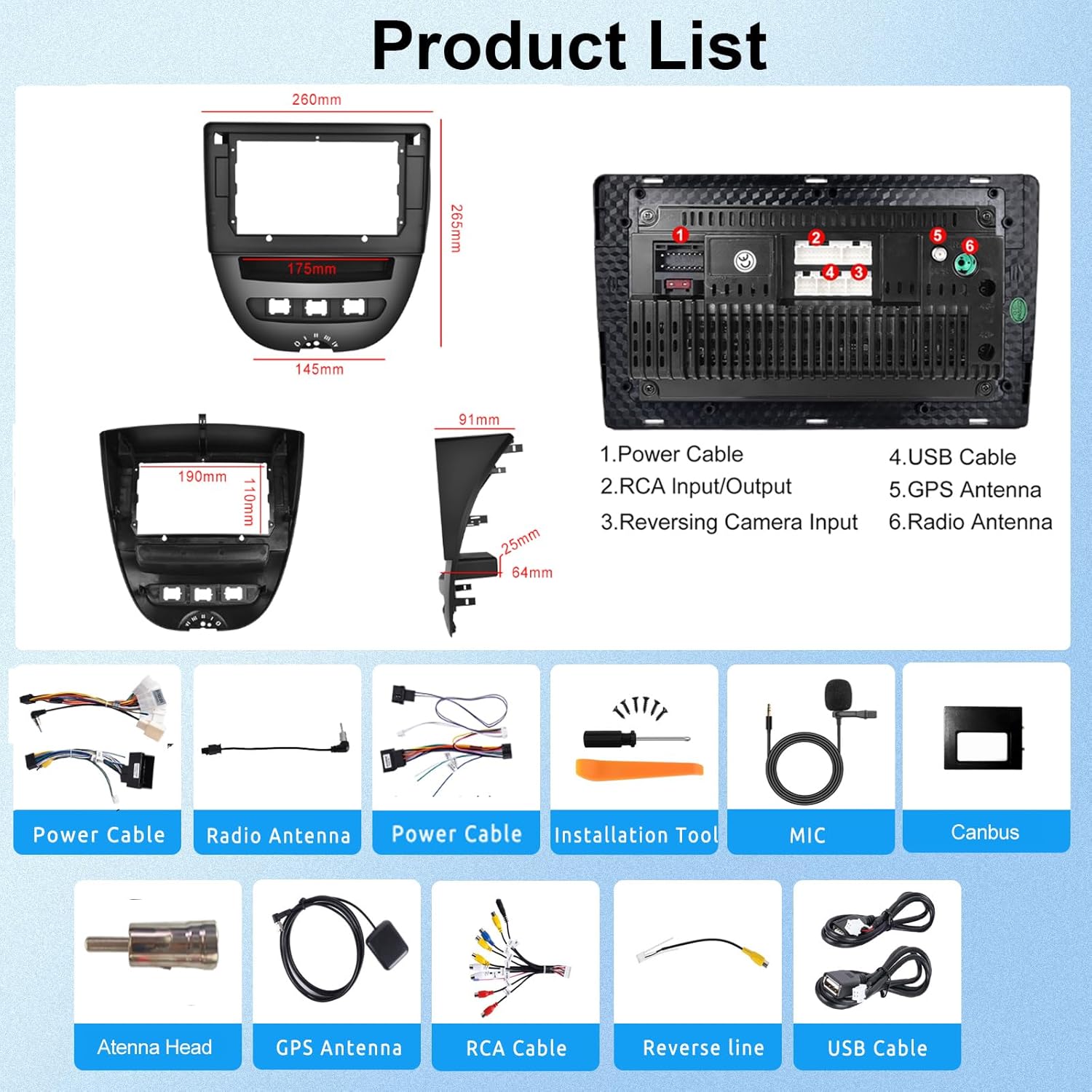 - 👉【Autoradio für Toyota/Peugeot/Citroen】Es ist gültig für Toyota Aygo 2004–2014/Peugeot 107 2009–2015/Citroen C1 2005–2014, bitte überprüfen Sie die Schnittstellen der verschiedenen Zubehörteile sind kompatibel mit Ihrem Fahrzeug vor