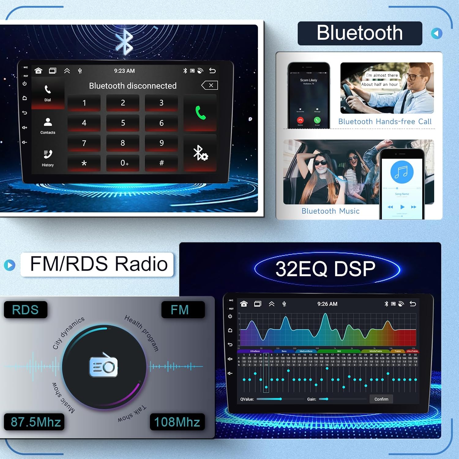 - 👉【Bluetooth & FM RDS Radio & Eingebauter DSP】Bluetooth-Freisprecheinrichtung mit eingebautem Mikrofon, unterstützt Kontaktsynchronisation und Bluetooth-Musikwiedergabe.Der FM-Radioempfänger kann automatisch Sender suchen oder voreinstellen (87,5