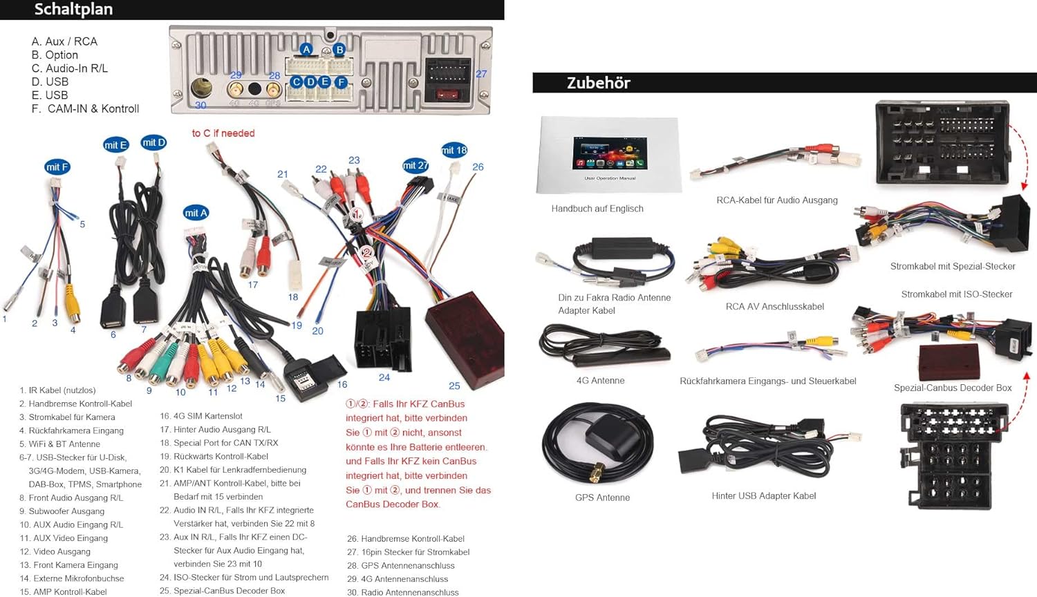 - 【Neuestes Android 12 - Hervorragende Multitasking-Fähigkeit】Octa Core, 2*A75+6*A55 64-Bit 2000 MHz CPU-Architektur, Benchmark-Ergebnisse über 200000, 4 GB RAM und 64 GB ROM, Canbus-Decoder enthalten. Unterstützt 1 TF-Karte / 2 USB bis zu 3 * 128