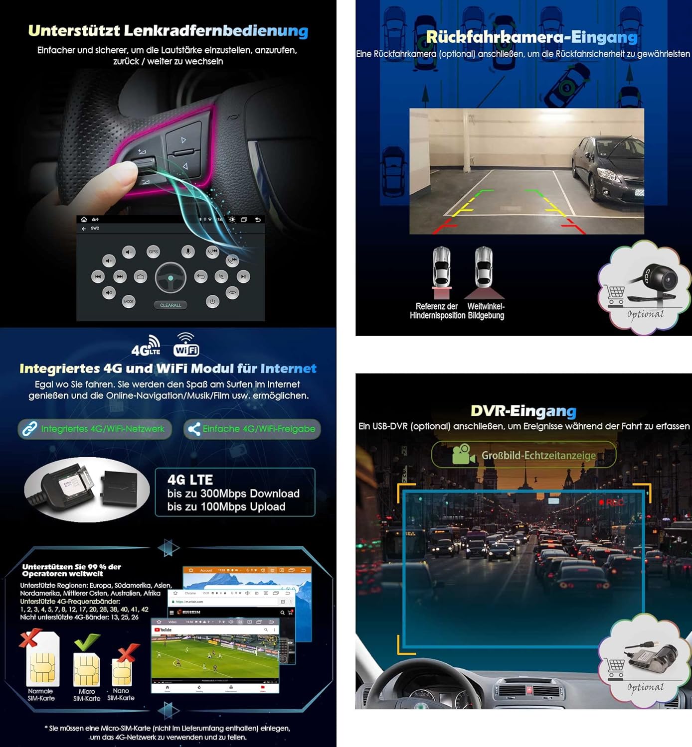 - 【Navigation & 4G & WiFi】✔ Sat Nav/GPS-Navigation vorinstallierte lokale Offline-Karten. Online-Karten werden auch nach einer Internetverbindung unterstützt, Sie können Karten-/Navigations-Apps (iGO, Waze, Sygic, HereWeGo) entsprechend der