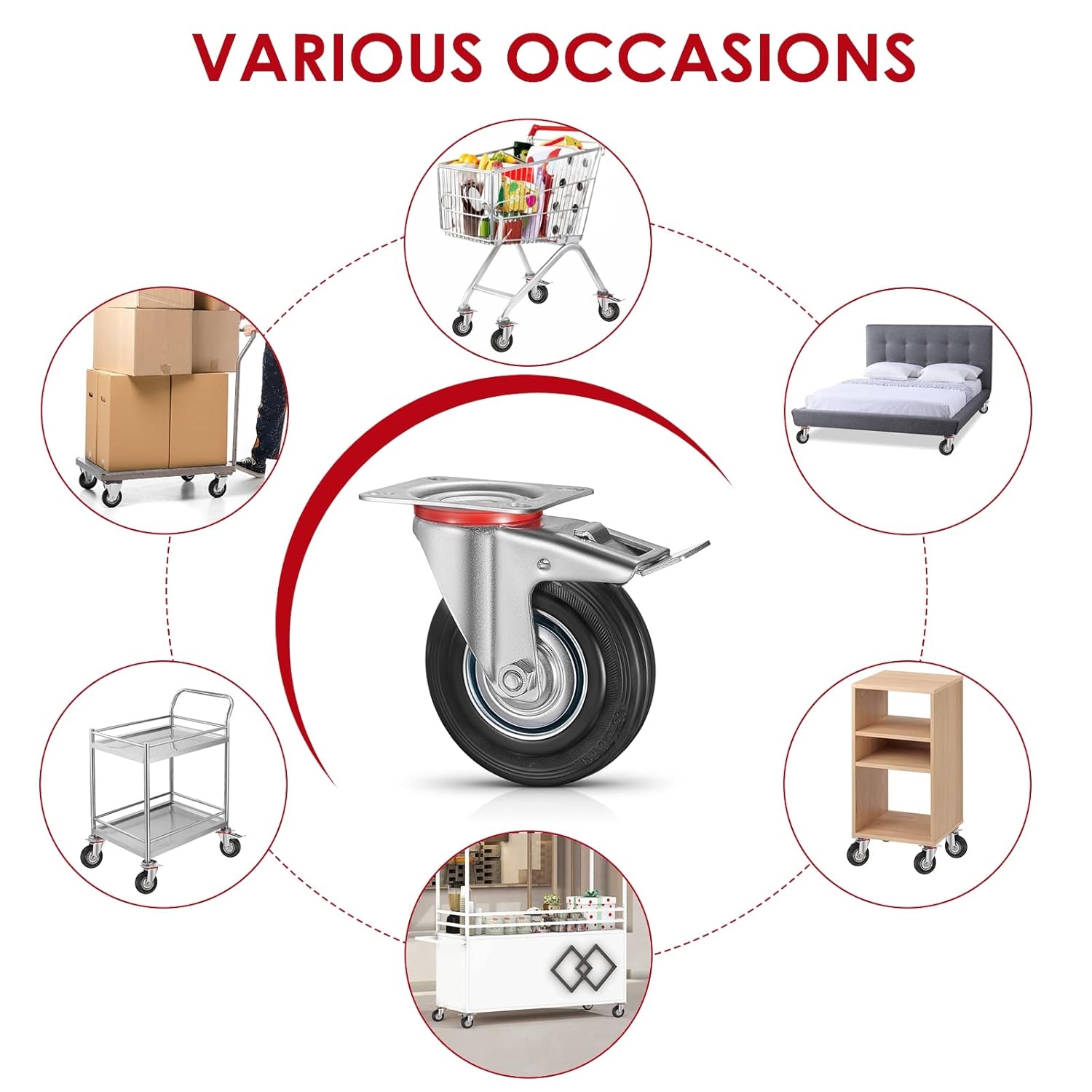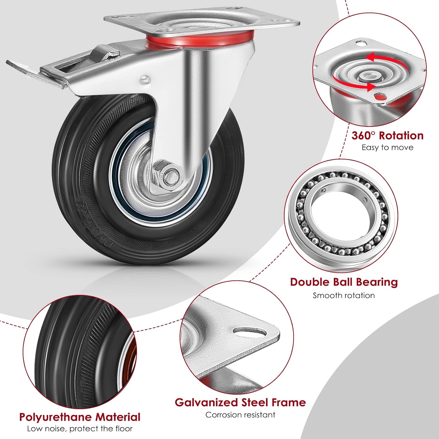 - 【Leiser Betrieb】: Die Polyurethan-Gummibeschichtung der Rollen ist verschleissfest, weich und geschmeidig und eignet sich für alle Arten von Böden, einschliesslich Teppichböden, Hartholz, Keramikfliesen, Laminat und Beton. Die Räder arbeiten