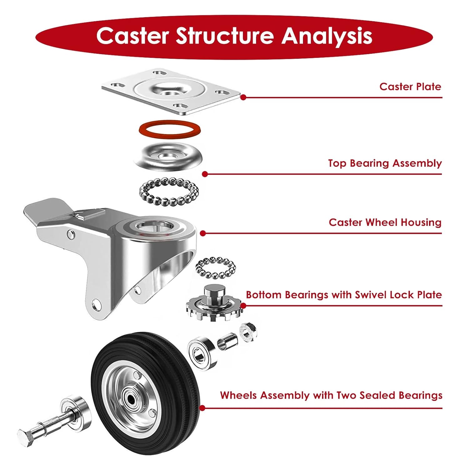 - 【Doppelte Bremsen】: Das Set enthält vier Lenkrollen, zwei mit und zwei ohne Bremsen. Die Bremsen sind leicht einstellbar und können aktiviert werden, um die Position und die Richtung der Möbel zu blockieren, was die Sicherheit und die einfache