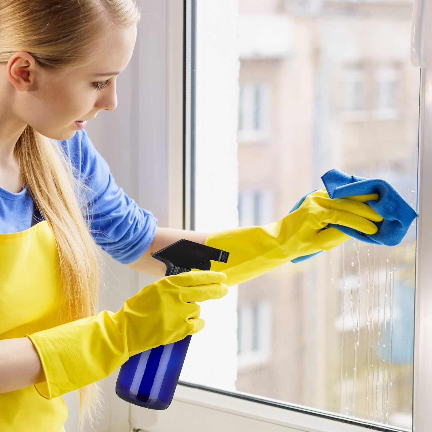 - Set: 8 Sprühflaschen für Haarpflege oder Reinigung - Glasflasche in Blau mit schwarzem Sprühkopf