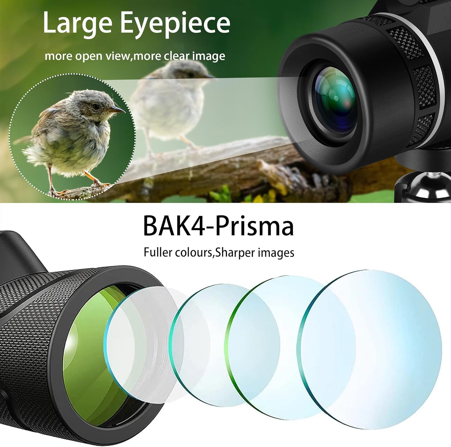 - MONOKULAR WEITGEHEND KOMPATIBEL MIT SMARTPHONE: Diese 80x100 leistungsstarke Monokular kommt mit schnell Ausrichtung Smartphone Clip und Stativ, kompatibel mit Smartphone, einfach zu installieren, Fernsteuerung Monokular, bietet High-Definition-Bilder