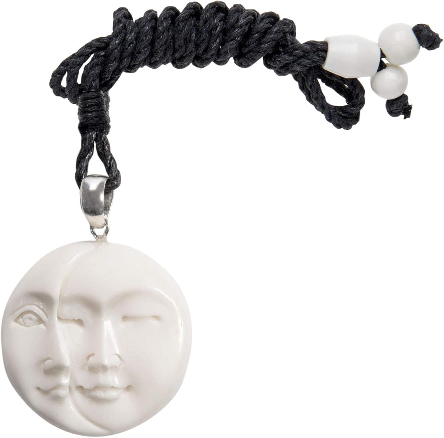 81stgeneration Frauen Männer Hand Geschnitzte Knochen Mondsichel Vollmond Gesicht Anhänger Halskette