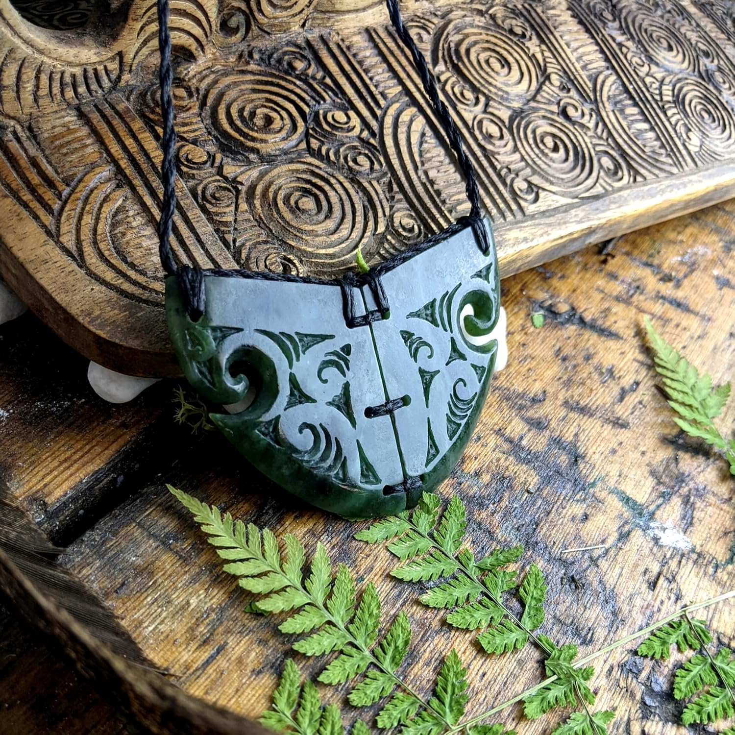 81stgeneration Halskette Koru Gravierte Brustplatte Handgeschnitzte Schwarze Nephrit-Jade für Damen