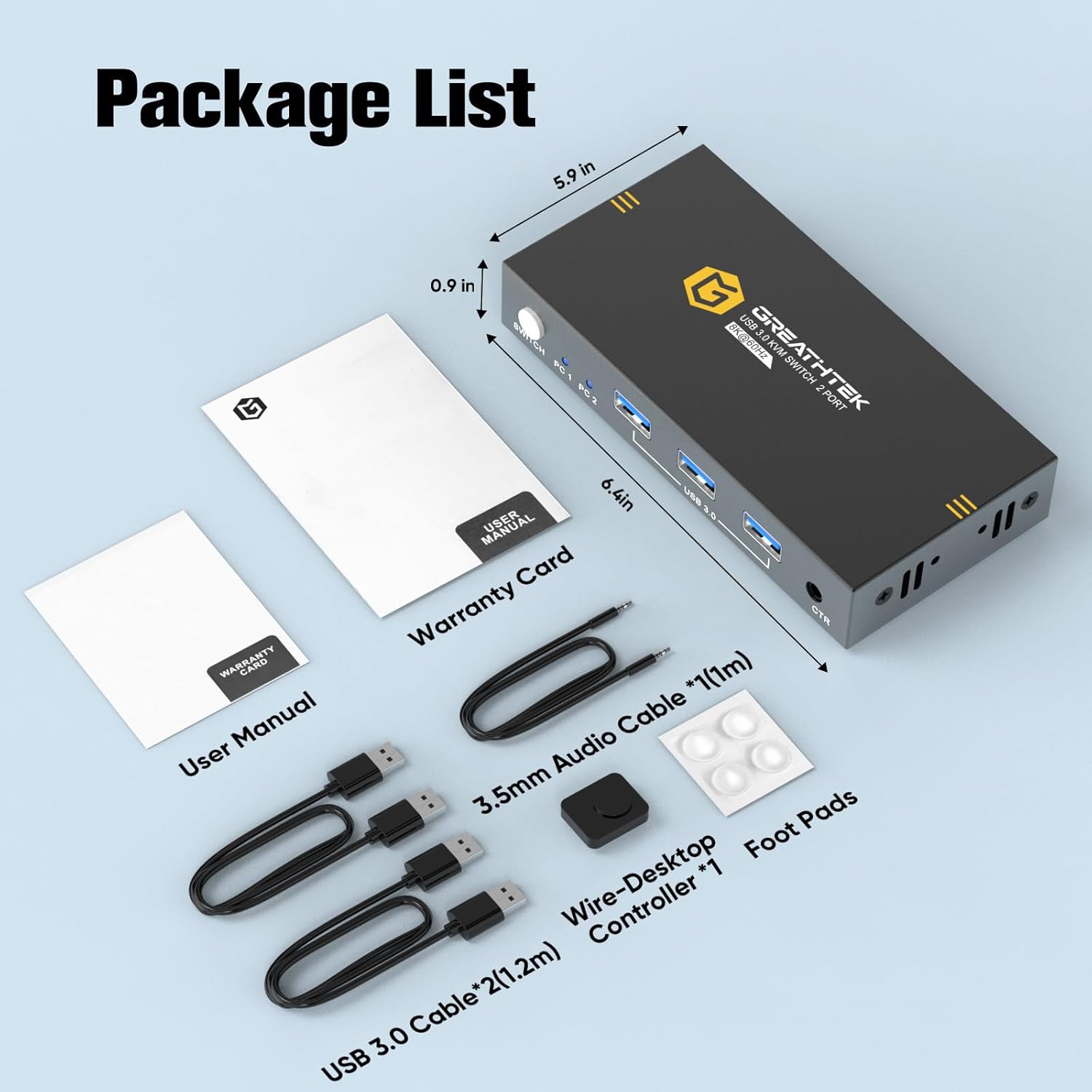 - 【USB 3.0 KVM Switcher】Dieser KVM Umschalter hat 3 USB3.0 Ports, die Übertragungsrate des USB3.0 Ports beträgt 5Gbps, was 10 Mal schneller ist als USB2.0 (Die Voraussetzung, dass der USB3.0-Anschluss diese Übertragungsrate erreichen kann, ist, dass