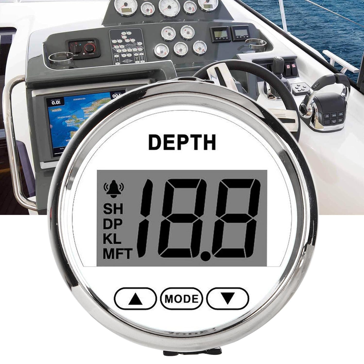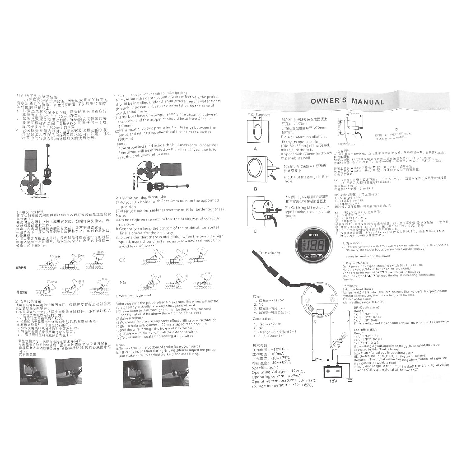- Praktisch: Die Arbeitsspannung beträgt 9‑32 V, bis zu 36 V, geringer Stromverbrauch, lange Lebensdauer, hohe Genauigkeit, kurze Startzeit, die höchste Tiefenanzeige von 100 m, Sie können sofort die Wassertiefe erkennen.