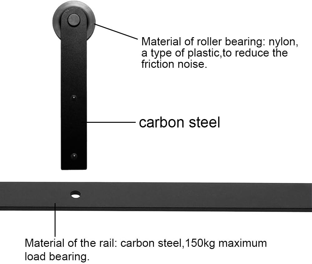 • MAXIMALE BELASTUNG 150 kg: Scheunentor rollen Material: PREMIUM NYLON (Hinweis: Alle Rollen auf dem Markt bestehen aus Nylon, da sonst viel Lärm entsteht). Schiebetür schiene: Kohlenstoffstahl mit Pulverbeschichtung, um den Verschleiss zu verringern