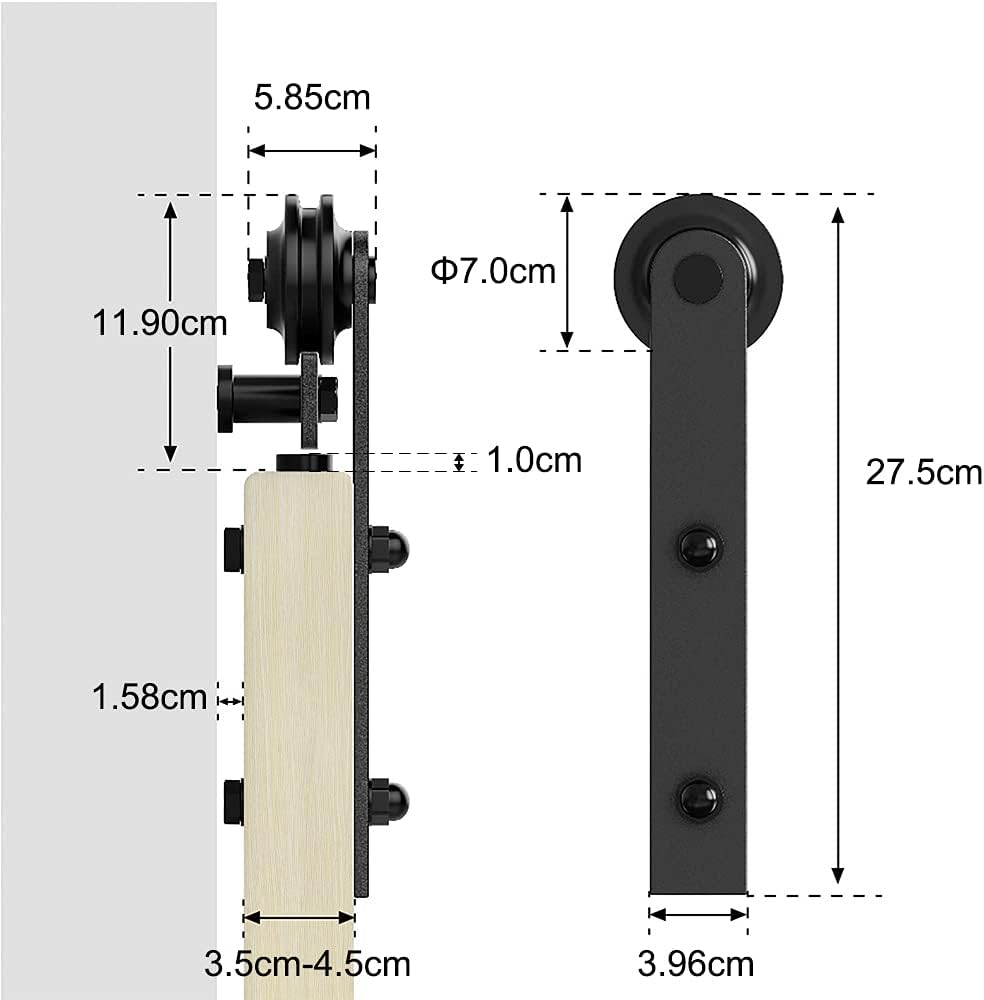 • ABMESSANLEITUNG:9FT schiene besteht aus einer 3*3ft schiene. Gleitschienen stärke: 5.8 mm. Gleitschienenbreite: 39.9 mm .Rollendurchmesser: 69.9 mm. Türstärke montieren: 35.0 mm-55.0 mm.