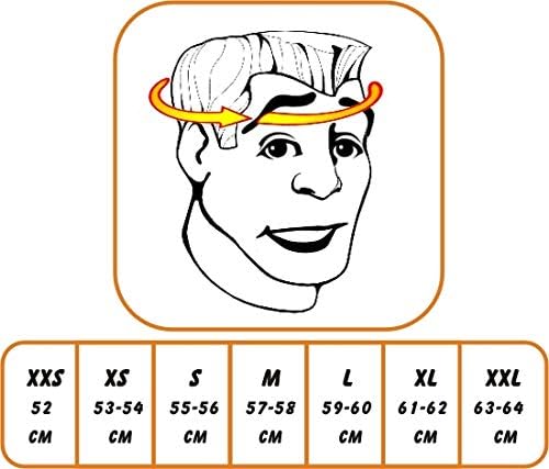 - Kopfumfang XS (53-54cm) S (55-56cm). M (57-58cm). L (59-60cm). XL (61-62cm)..XXL:(63-64cm) .