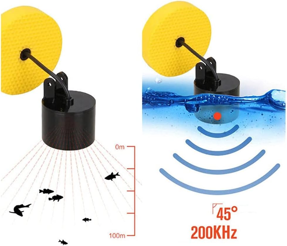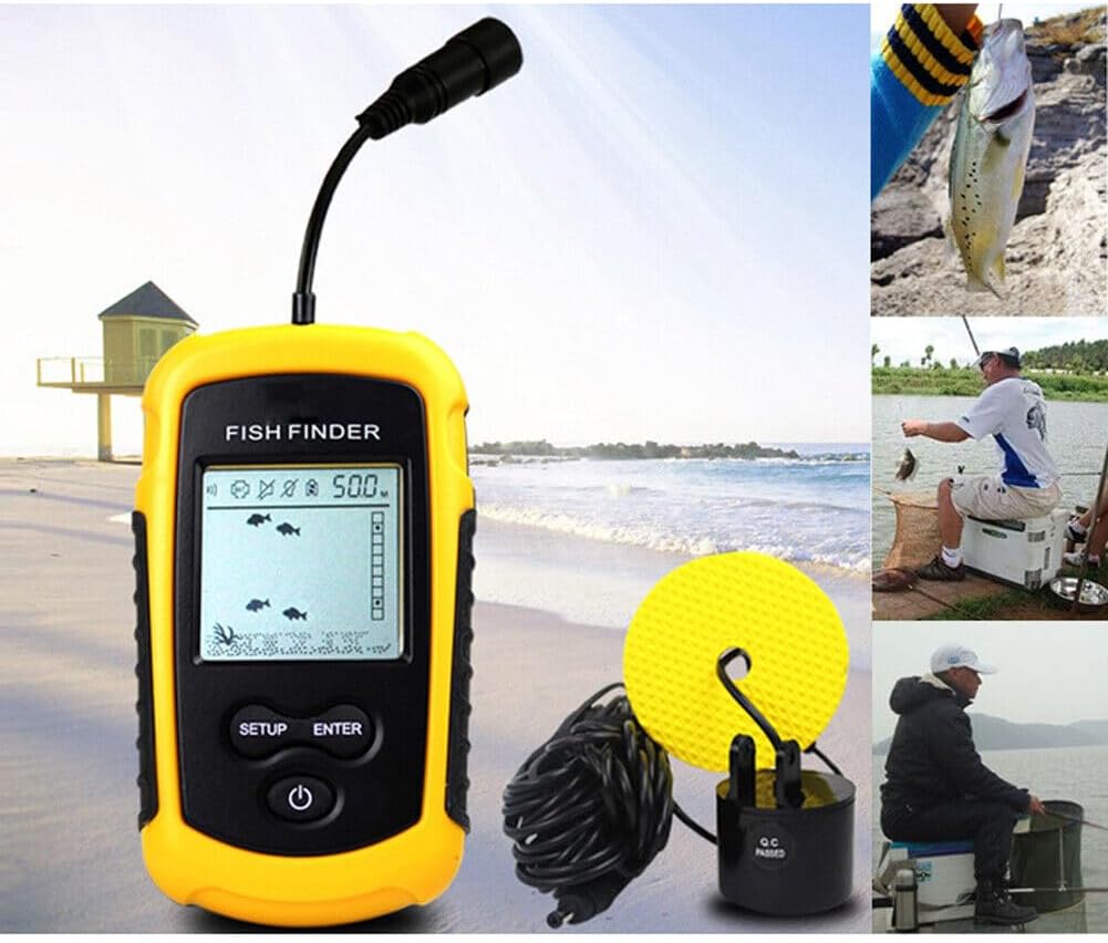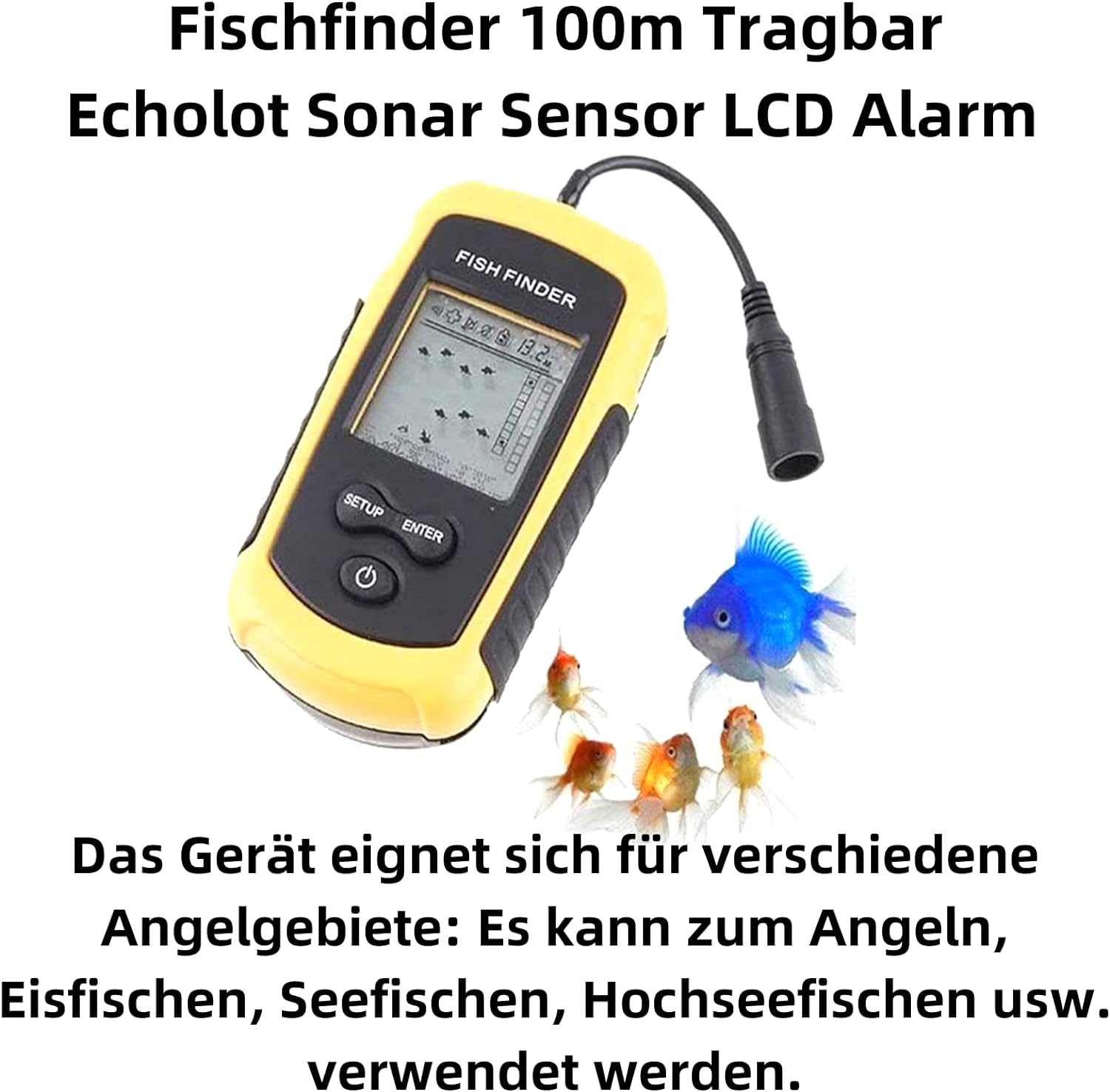 - Mit einem tragbaren Fischfinder können Sie die Wassertiefe, den Fischstandort und die Objekte auf dem Boden (Felsen, Seetang) in Echtzeit ermitteln.