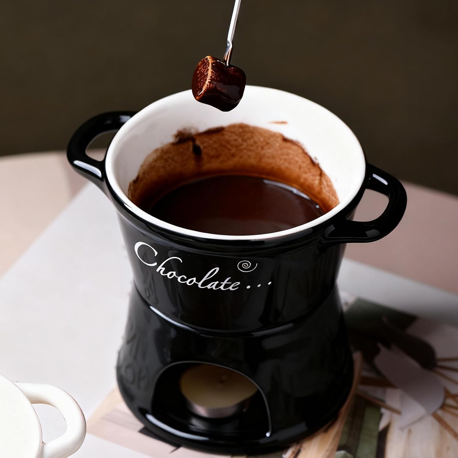 - 【Must-Have für ein Candle-Light-Dinner】: Das elegante Design und die handgefertigte Keramikkonstruktion des Fonduebechers machen ihn zu einem idealen Accessoire für Candle-Light-Dinner und bieten an besonderen Abenden ein gehobenes Speiseerlebnis