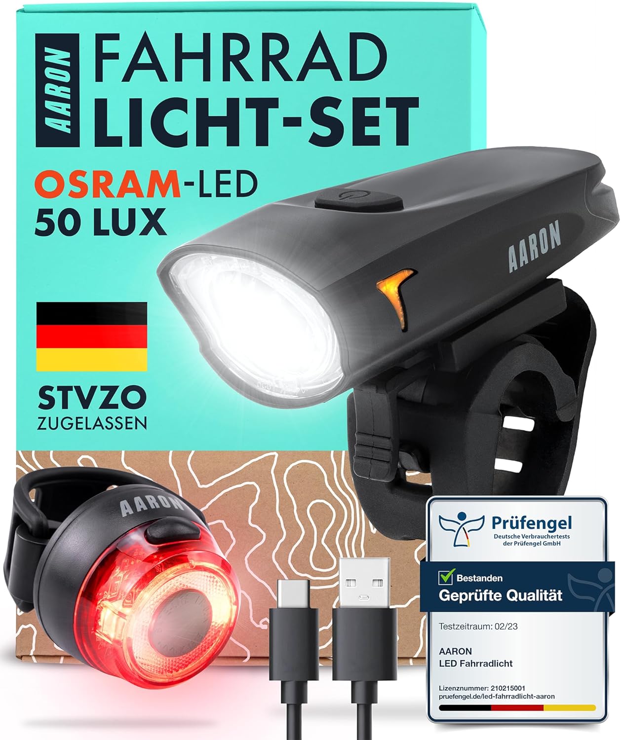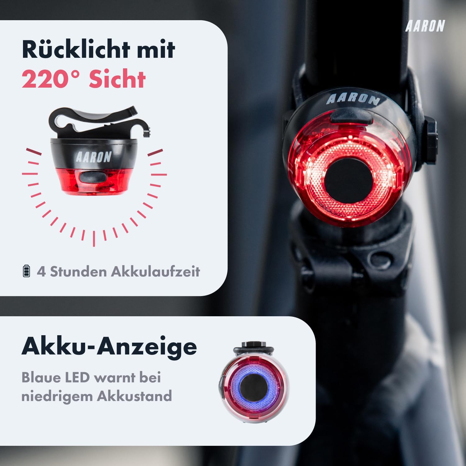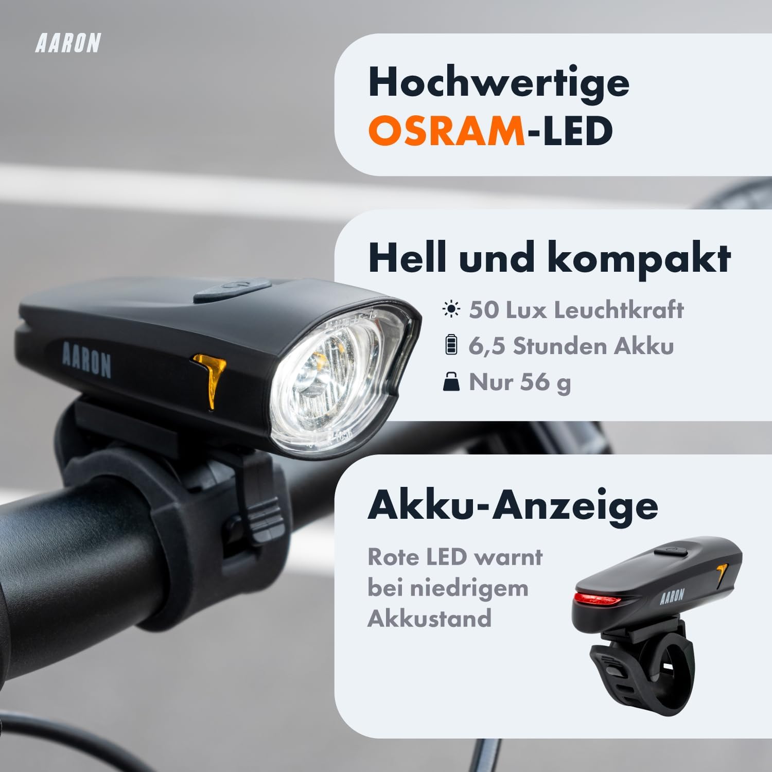 - ✅ SAUBERE UMWELT - Die Produkte von AARON zeichnen sich durch eine lange Lebensdauer aus. Die hochwertig verarbeitete AARON LUX LED-Beleuchtung wird so zu einem treuen, langfristigen Begleiter. Zusätzlich wird die Fahrradbeleuchtung von AARON