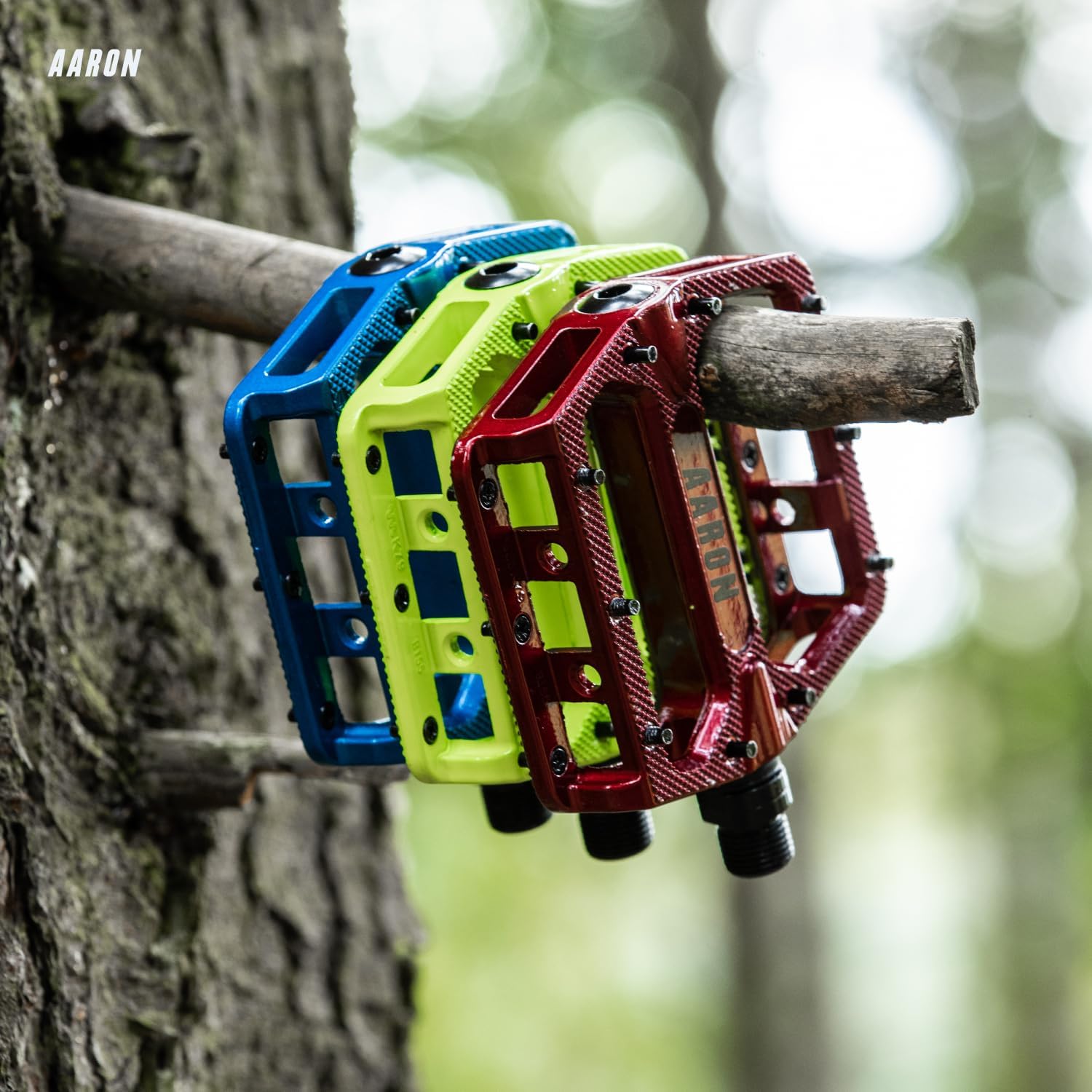 - ✅ Langlebiges MTB ZUBEHÖR - Eine wärmebehandelte CroMo-Achse mit Industrielagern macht die Pedale sehr verschleissfest. Mit den breiten ROCK Pedalen von AARON hast Du das passende Fahrradzubehör für Dein Mountainbike, Downhill Bike, BMX, Dirt Bike,