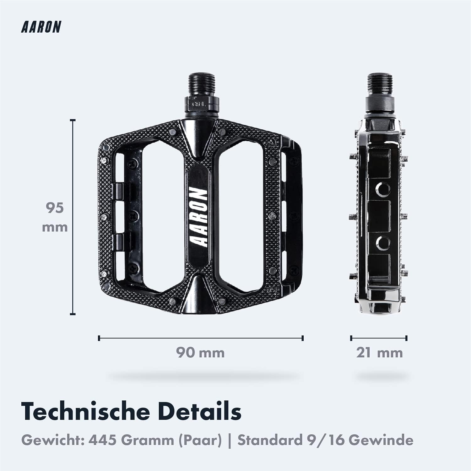 - ✅ Langlebiges MTB ZUBEHÖR - Eine wärmebehandelte CroMo-Achse mit Industrielagern macht die Pedale sehr verschleissfest. Mit den breiten ROCK Pedalen von AARON hast Du das passende Fahrradzubehör für Dein Mountainbike, Downhill Bike, BMX, Dirt Bike, Crossbike oder Trekkingbike.