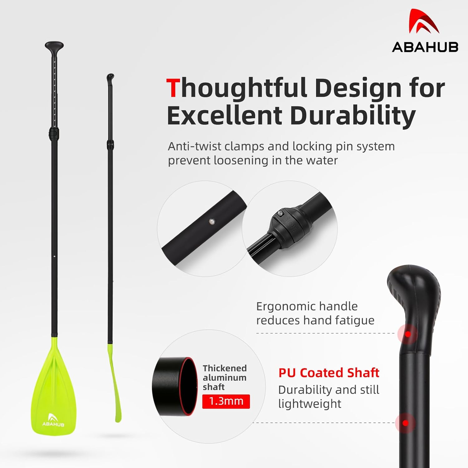 - Langlebige Material: Der Schaft von SUP Paddel besteht aus einer 1,3mm dicken Aluminiumlegierung in Flugzeugqualität, ultra leicht und extrem hart. Das UV-stabile Blatt ist aus Polypropylen und mit Fiberglas verstärkt, schlag- und korrosionsbeständig.