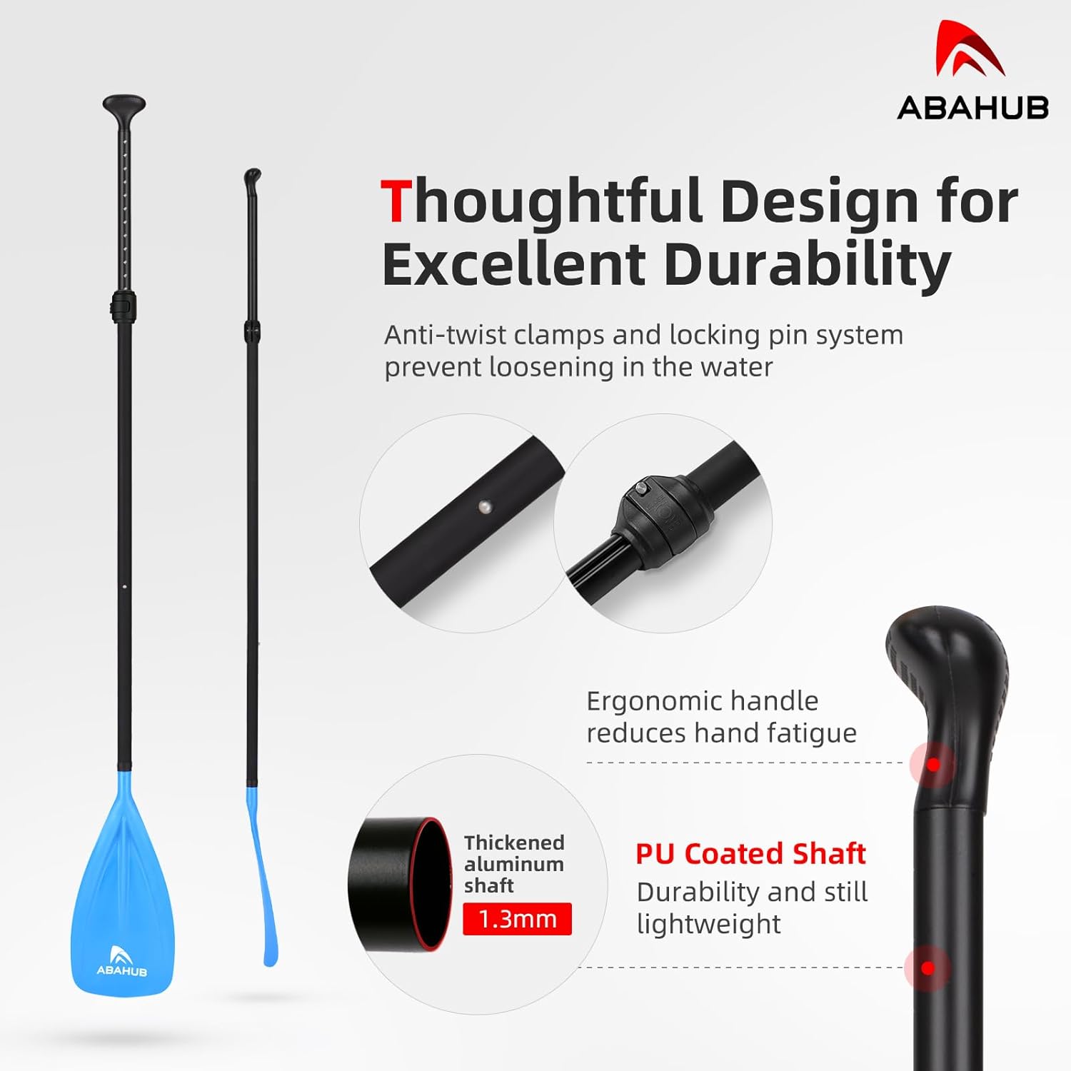 Abahub SUP Paddel 3teilig Stand Up Teleskoppaddel 173-213cm Aluminium mit PU Beschichtung für SUP Bo