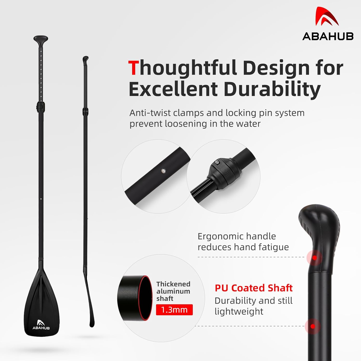 Abahub SUP Paddel 3teilig Stand Up Teleskoppaddel 173-213cm Aluminium mit PU Beschichtung für SUP Bo