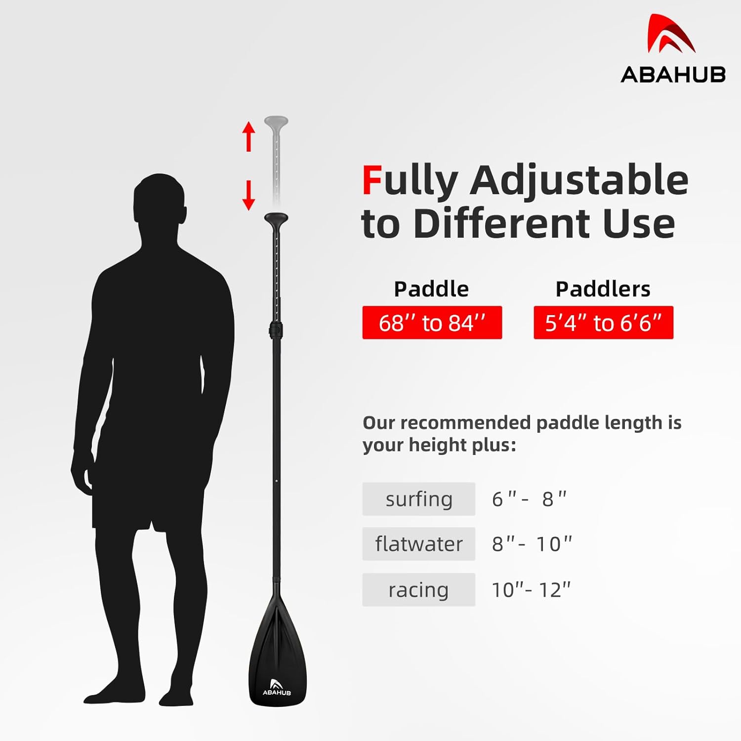 • Verstellbare Länge:Länge von 173cm bis 213cm eingestellt werden. Passend für die meisten Paddler. Empfehlung: die Paddellänge an Ihre Körpergrösse anzupassen, 15-20cm für SUP-Surfen, 20-25cm für Flachwasser und 25-30cm für SUP-Wettkampf