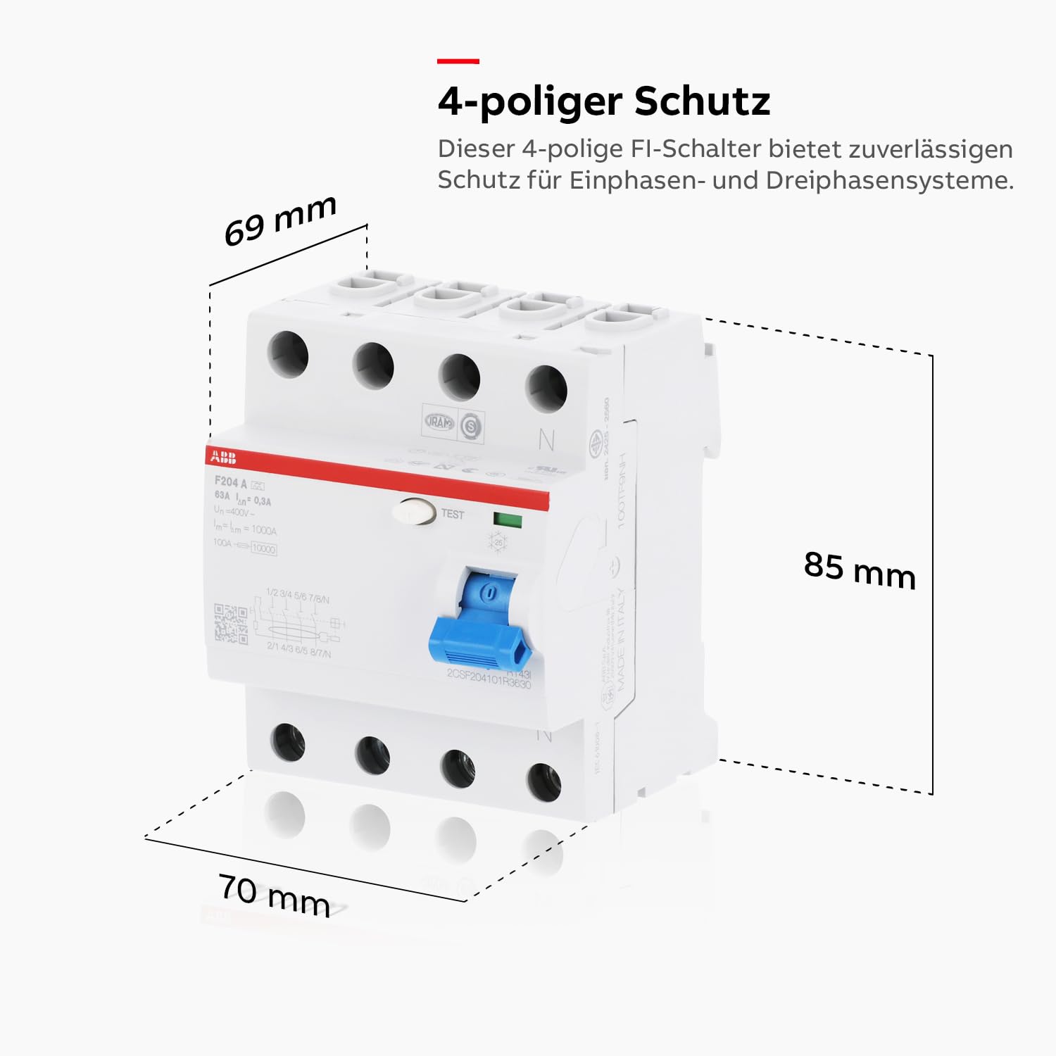- ABB F200 RCCB, 4-polig, 63A, 300mA Typ A 230V ac