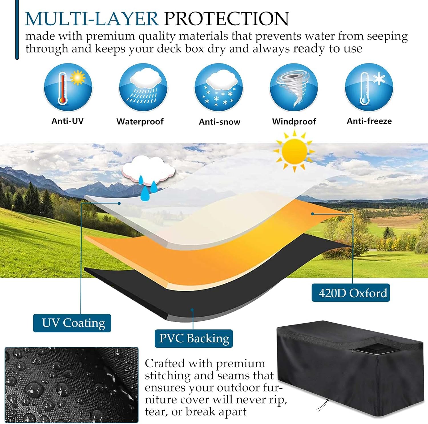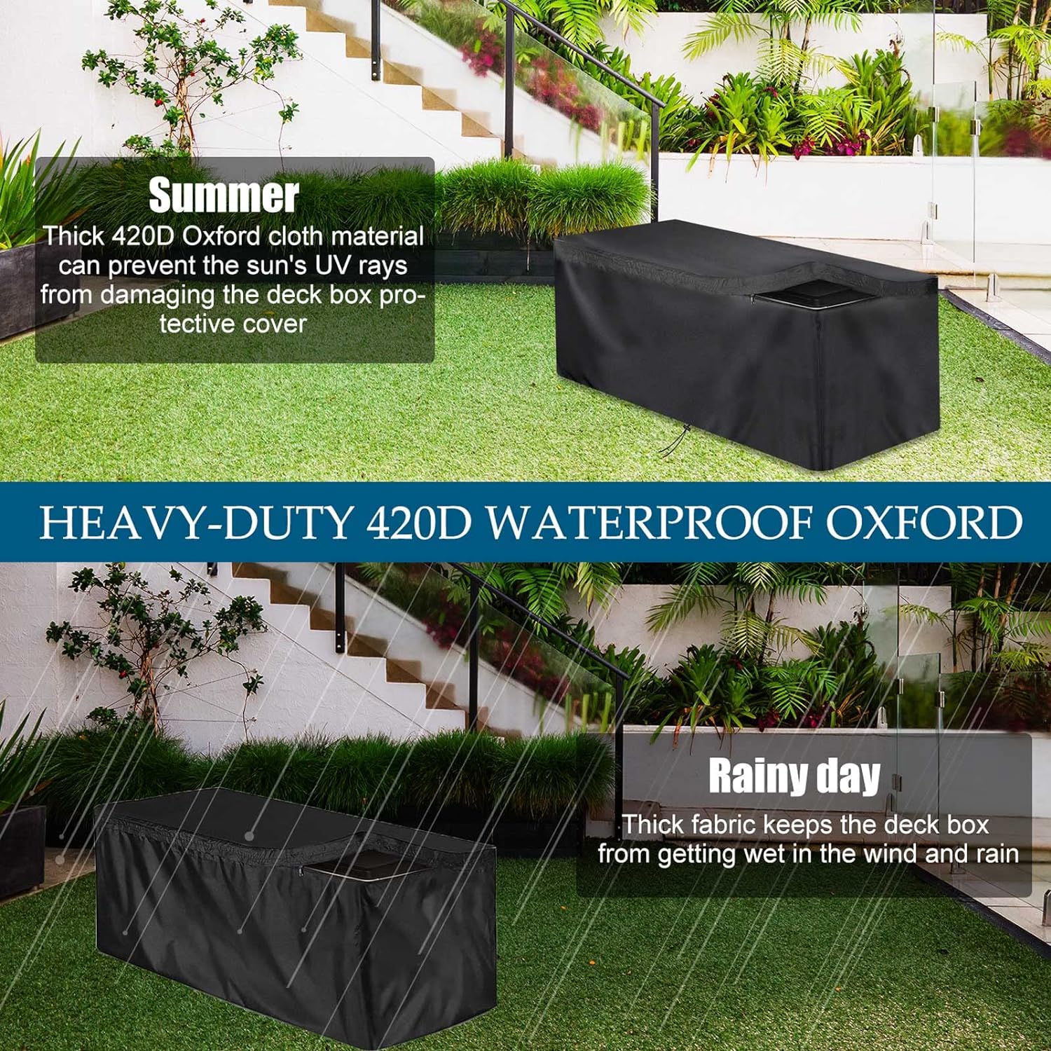 - PREMIUM-MATERIALIEN: Abdeckung für Aufbewahrungsboxen besteht aus robustem 420D Oxford-Stoffmaterial, das eine gute Belüftung bietet, gartenbox abdeckung und einen hervorragenden Sonnen- und Regenschutz bietet. Das Material ist so schwer, dass es auch