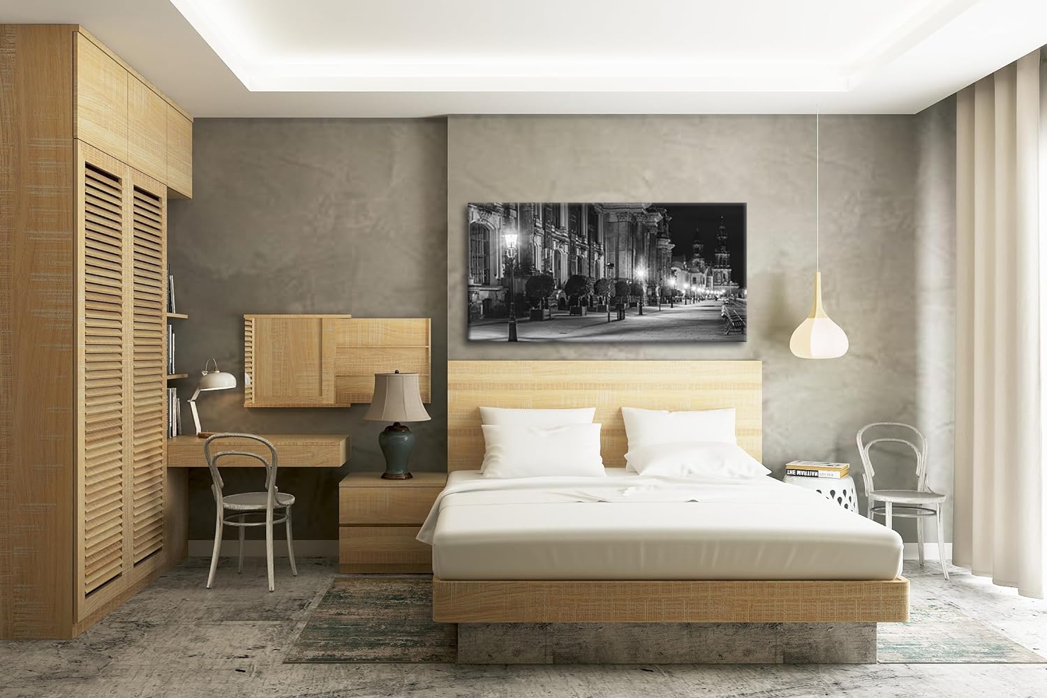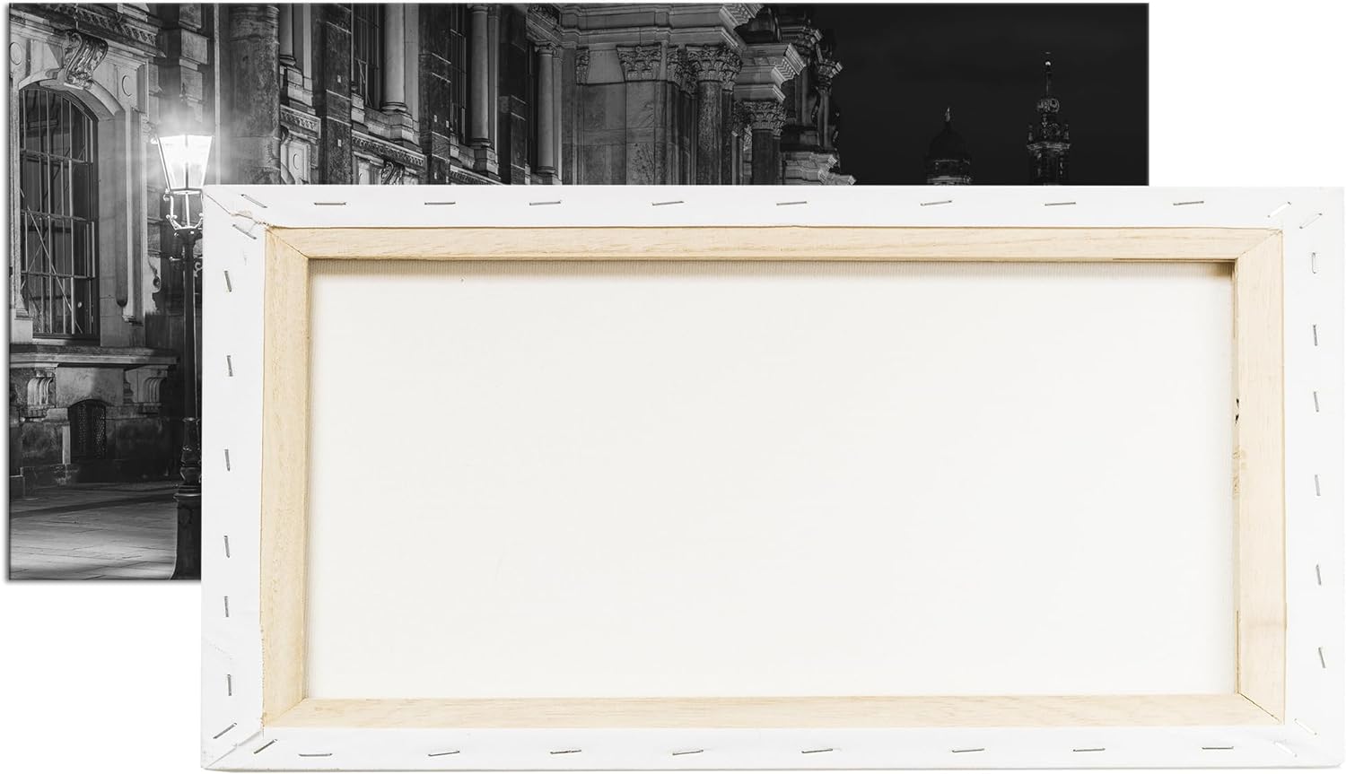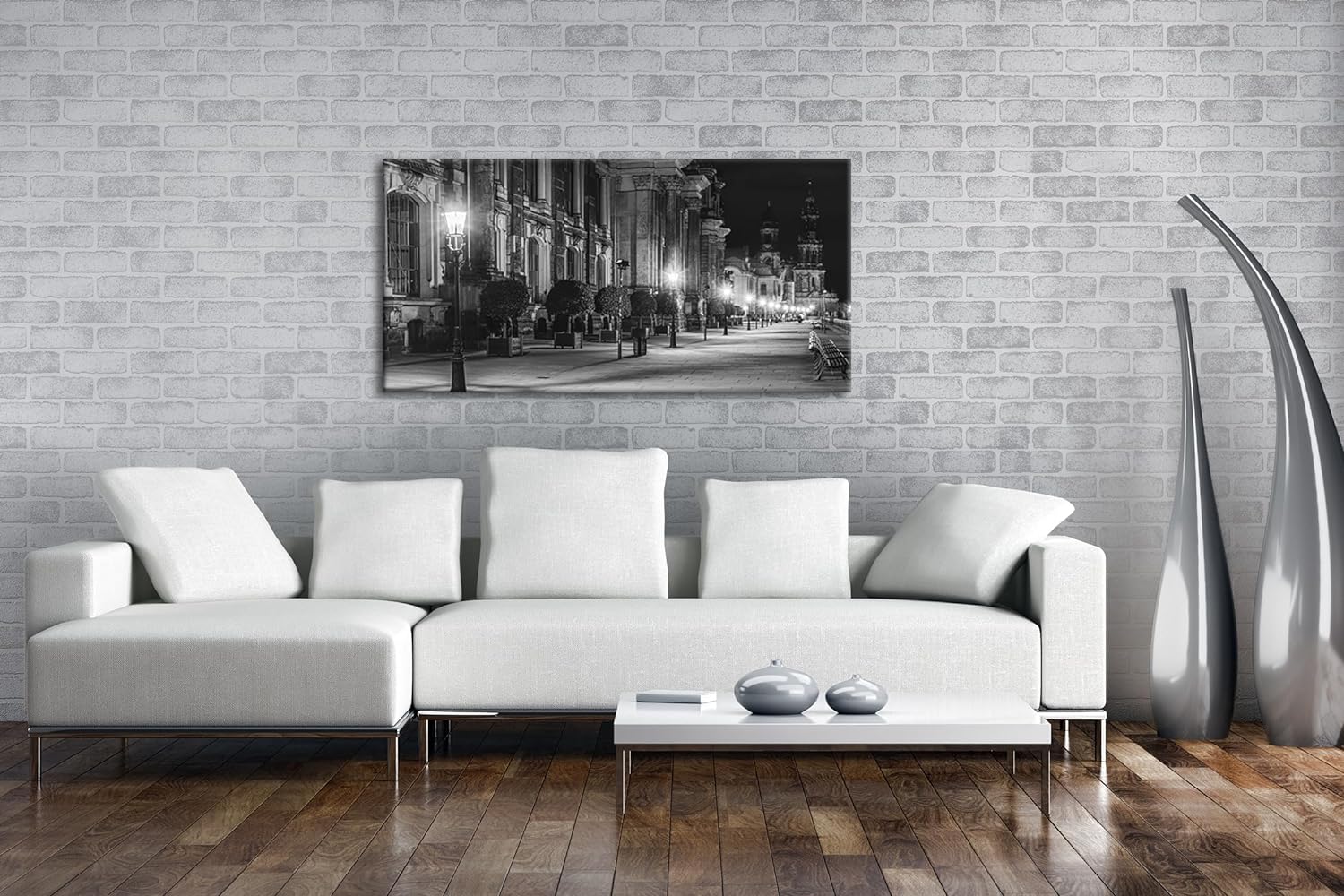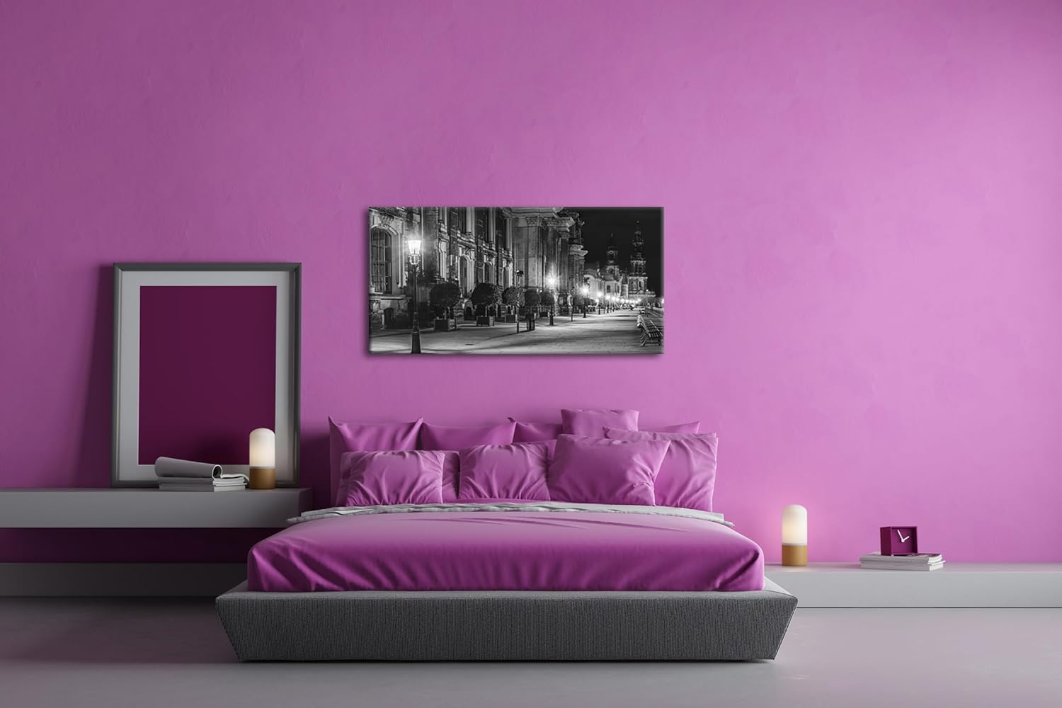 Abendstimmung am Elbufer in Dresden Panorama 120x60 cm Effekt: Schwarz/Weiss als Leinwandbild, Motiv