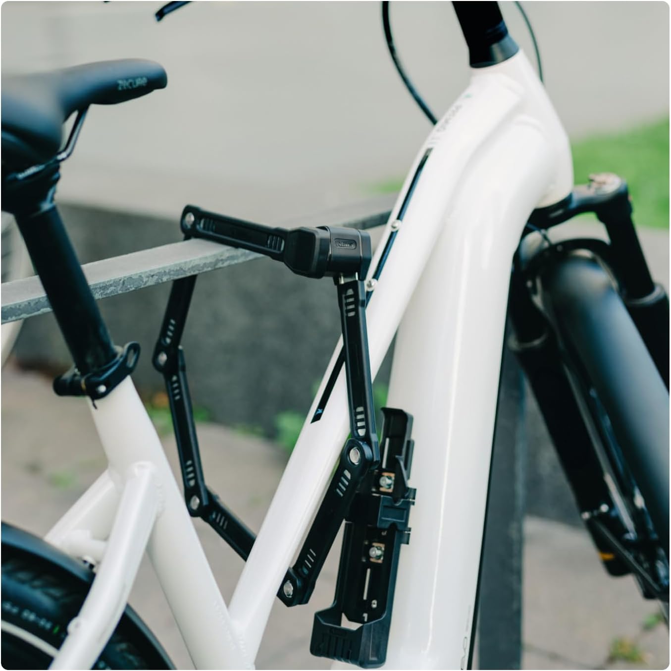• Inklusive Halterung: Das Faltschloss lässt sich platzsparend wie ein Zollstock zusammenfalten und in der im Lieferumfang enthaltenen Halterung SH am Fahrrad transportieren