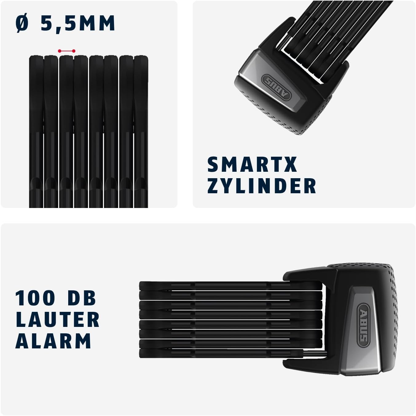 - STABIL & SICHER: Faltschloss mit höchstem ABUS-Sicherheitslevel 15 - 5,5 mm starke Stahlstäbe zum Auseinanderfalten mit weicher Ummantelung zum Schutz vor Kratzern