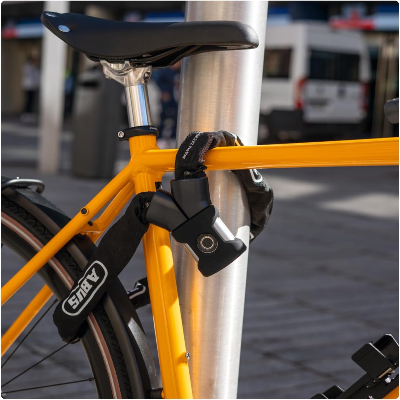 - Hohe Sicherheit: die 7 mm starke Vierkantkette und der Schlosskörper aus beschichtetem Zinkdruckguss bieten in Kombination mit der doppelten Kugelverriegelung hohen Widerstand gegen Aufbruchsversuche
