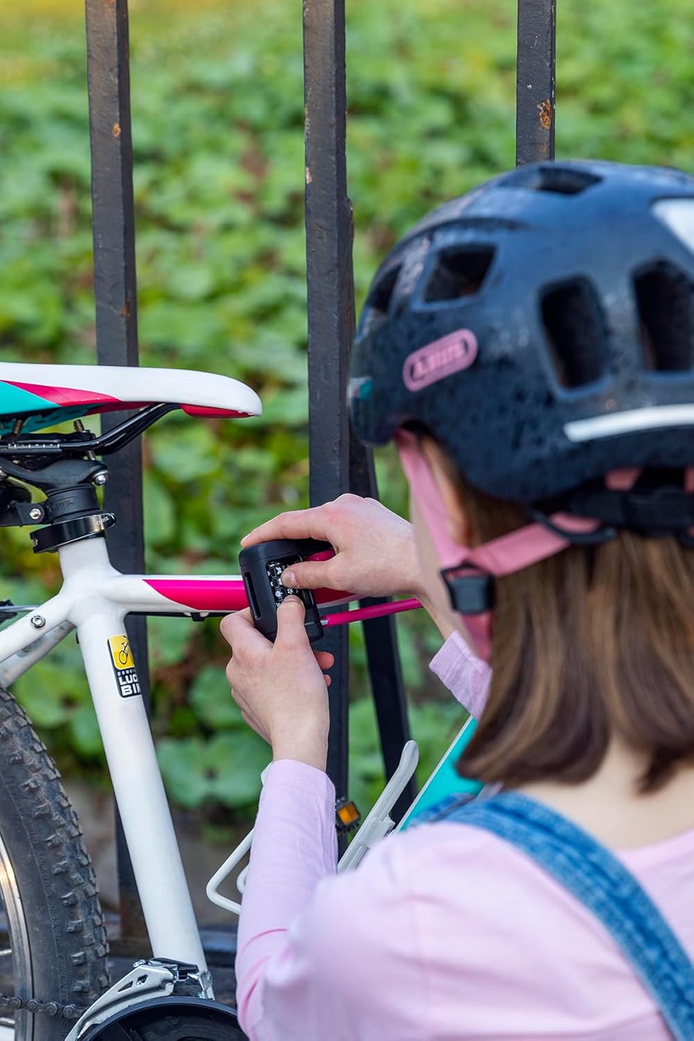 - DETAILS: Fahrradschloss für Mädchen und Jungen - ausgeklappte Länge 60 cm, Gewicht 460 g, Farbe Pink, schlüssellos, Made in Germany
