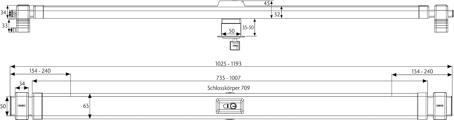 - Beide Riegel greifen fest in die mit dem Mauerwerk verankerten Schliesskästen ein